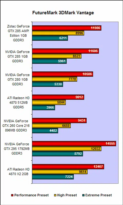 from the Zotac GeForce GTX 285 AMP! Edition. Clock speeds are factory-overclocked.