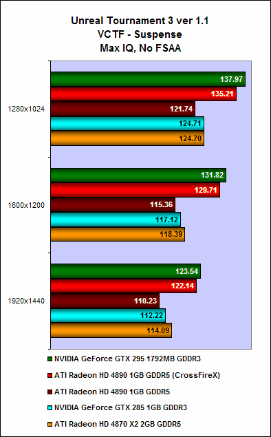 However, the GeForce GTX 295 turned the tables when it came to Vantage, where it scored a HardwareZone.com record of 14721 on the "Performance" preset. That's more than 1000 3DMarks more than what the two XFX Radeon HD 4890 cards could achieve. It was also clearly the faster card on Far Cry 2. In Unreal Tournament though, both the competitors turned out similar results.