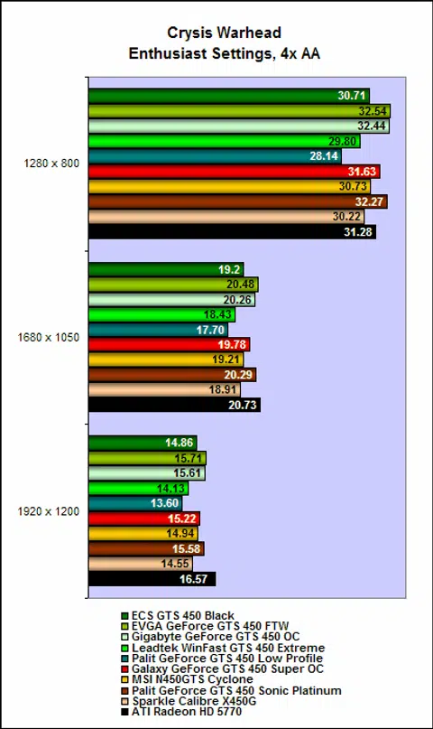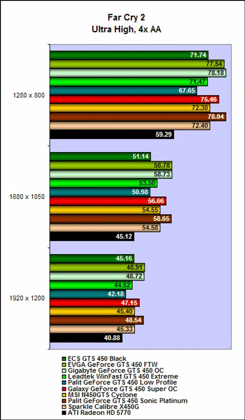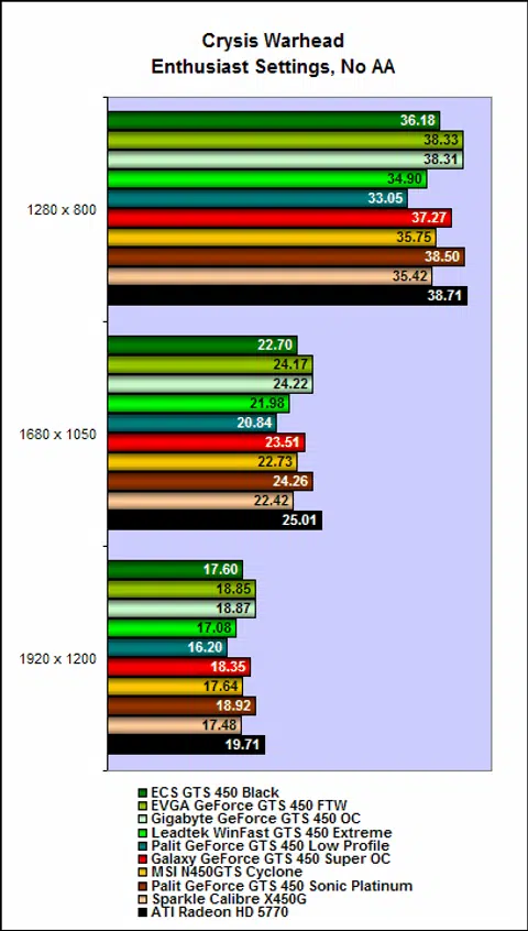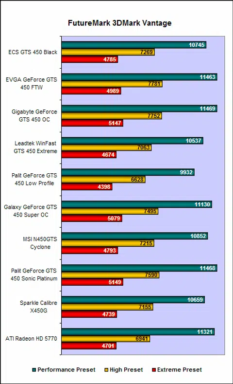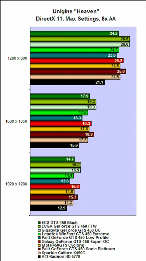 Overall, the cards performed up to our expectations and each has its own appeal. That said, if you are only interested in outright speed, our recommendation is the cooler to run Gigabyte GeForce GTS 450. The ECS and Leadtek cards are pretty evenly matched in our books, but the Leadtek gains a slight advantage because of its cheaper price. And if you are looking for a powerful mainstream card to power your SFF or HTPC, the Palit GeForce GTS 450 Low Profile is an excellent choice.