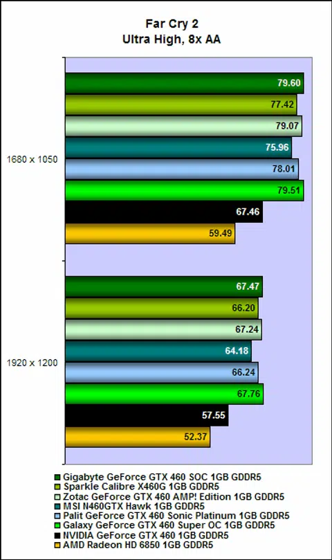 As we had anticipated, the three cards were amongst the fastest GeForce GTX 460 cards currently available in the market. Thanks to their aggressive clock speeds, the three cards had explosive performance, performing markedly quicker than a reference GeForce GTX 460.