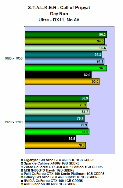 Clock speeds are usually a good indication of a card’s performance and we are expecting these cards to be substantially faster than a reference GeForce GTX 460. The Gigabyte and Zotac cards’ clock speeds are very comparable and so they should be performing very similarly. The Sparkle card with its lower clock speeds will be at a slight disadvantage here. In terms of comparisons, we'll be throwing in some of the previously reviewed cards, but not all as the list and comparisons could grow too long.