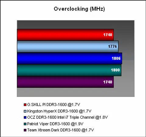 It is however when one attempts to overclock their systems that the greater allowance afforded by these higher frequency memory modules get their gloss, since it's quite unlikely that the typical DDR3-1333 memory can go up to 1800MHz as we managed with these DDR3-1600 memory. It was in overclocking that more well-known enthusiast brands like OCZ and Patriot showed their true colors.