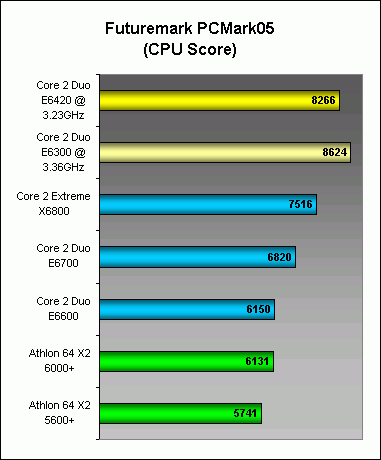 PCMark05 is a more straightforward synthetic benchmark than many of our other benchmarks but we continue to use this for its ease and simplicity that end-users can use for simple reference testing purposes. As such the results in PCMark05 are quite skewed towards higher clock speeds and the likes where the Core 2 Duo E6300 system overclocked to 3.36GHz and its faster operating DDR2-1000 memory gave the system slightly better scores than the overclocked E6420 system. Still, it is plenty faster than all of the stock clocked dual-core systems as shown below.