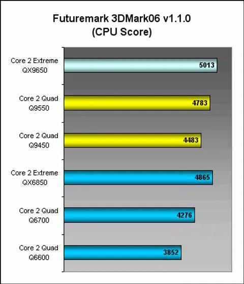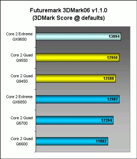 For this article, we'll primarily be comparing against Intel's own quad-core processors since AMD's Phenom poses no challenge to it. As such we'll have results from Core 2 Quad Q6600, Q6700, Q9550 and Q9450 processors as well as the Core 2 Extreme QX6850 and QX9650. Pay careful attention to the performance of the Q9550 as it can often match up to the QX6850 and isn't much slower than the QX9650, making it an ideal choice on the high-end.