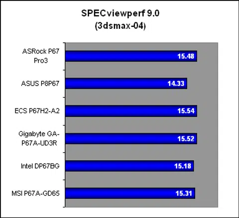 With the exception of a slightly anomalous performance from the ASUS P8P67 in 3dsmax-04, most of the boards were on par with each other. We did find the Gigabyte and Intel boards to be slightly behind in PRO/ENGINEER by up to 5%, but if the memory timings were affecting the MSI board, it wasn't obvious here.