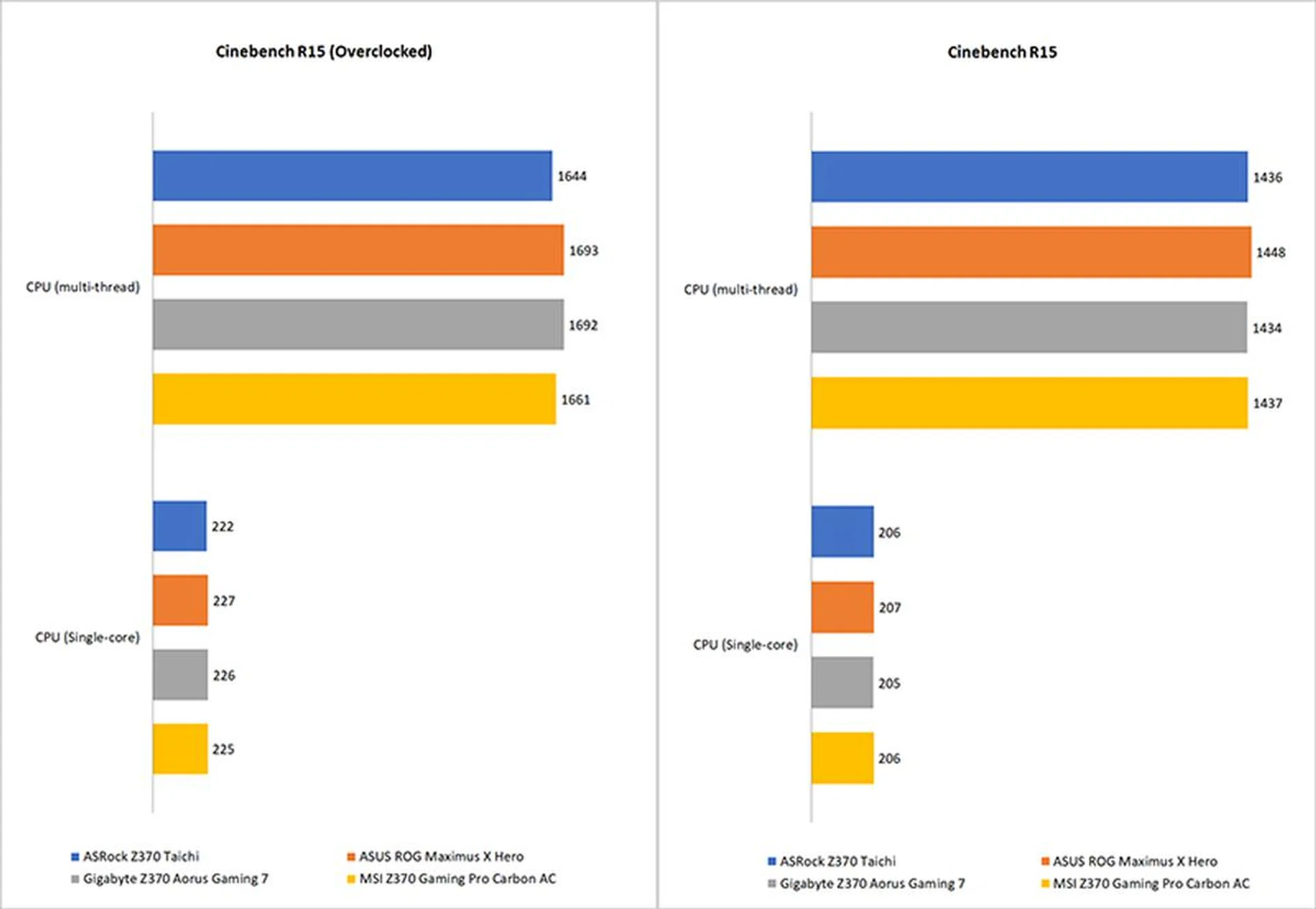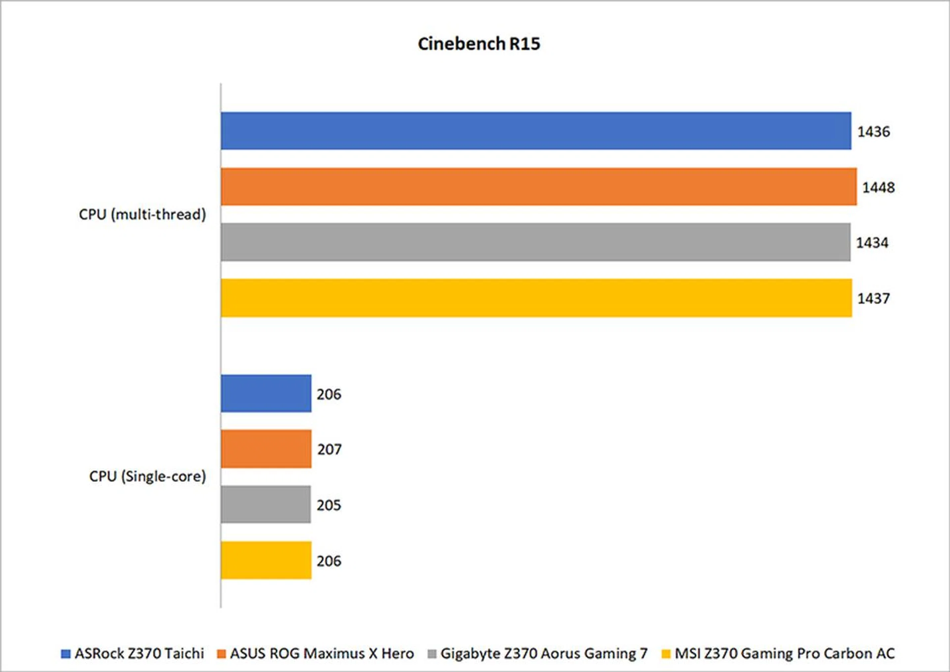 Cinebench is a benchmark tool used to compare CPU performance across different systems, so we’ll be using it to evaluate how well our Intel Core i7-8700K plays with the different motherboards. The multi-threaded test scenario uses all of the system’s processing power – it can utilize up to 256 threads – to render a photorealistic 3D scene, making use of various algorithms to stress all available processor cores. Conversely, the single-core test stresses just one core.