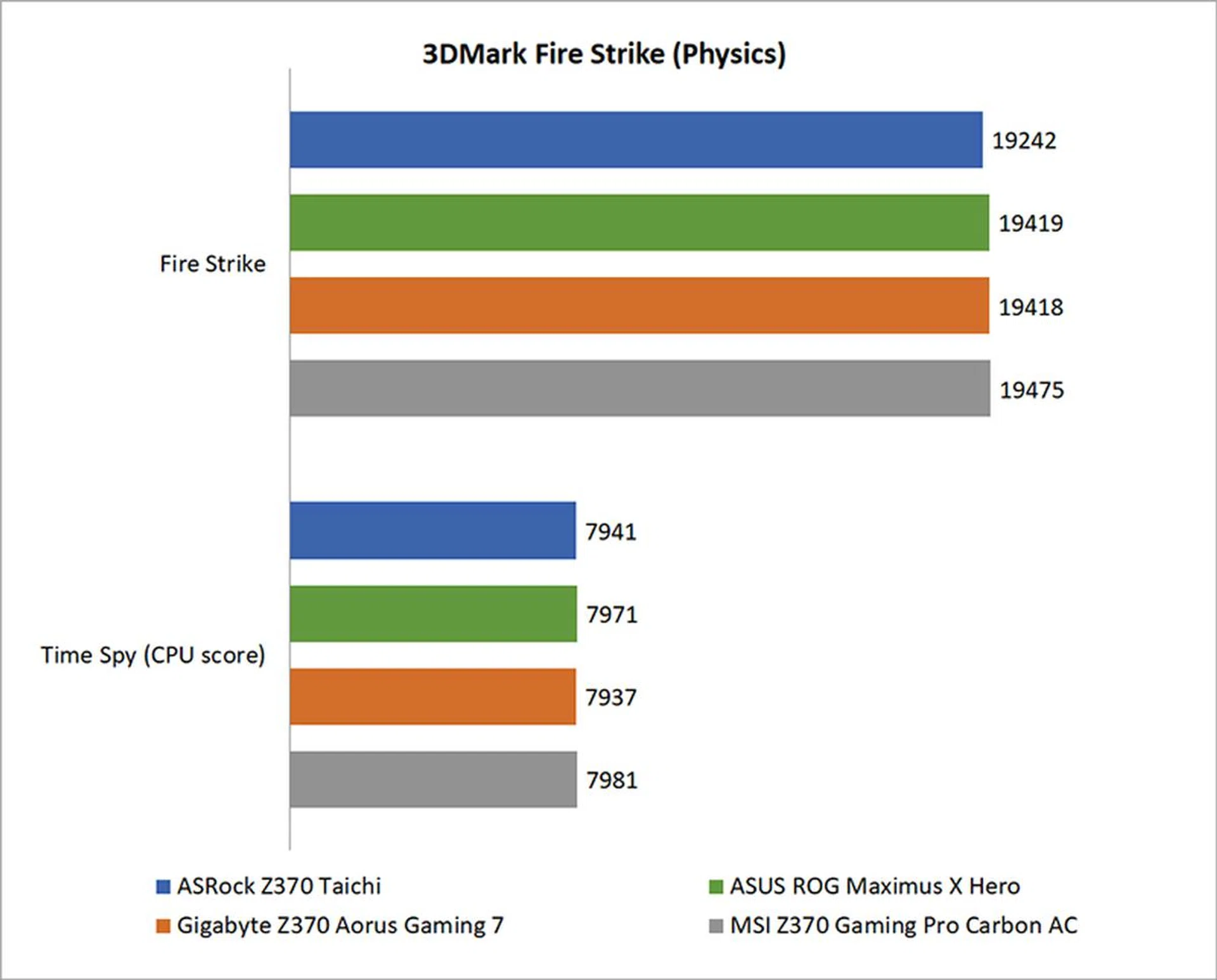 We’ve also teased out the Physics and CPU scores for the Fire Strike and Time Spy tests and compiled them in separate tables to give a better idea of CPU performance on each board.