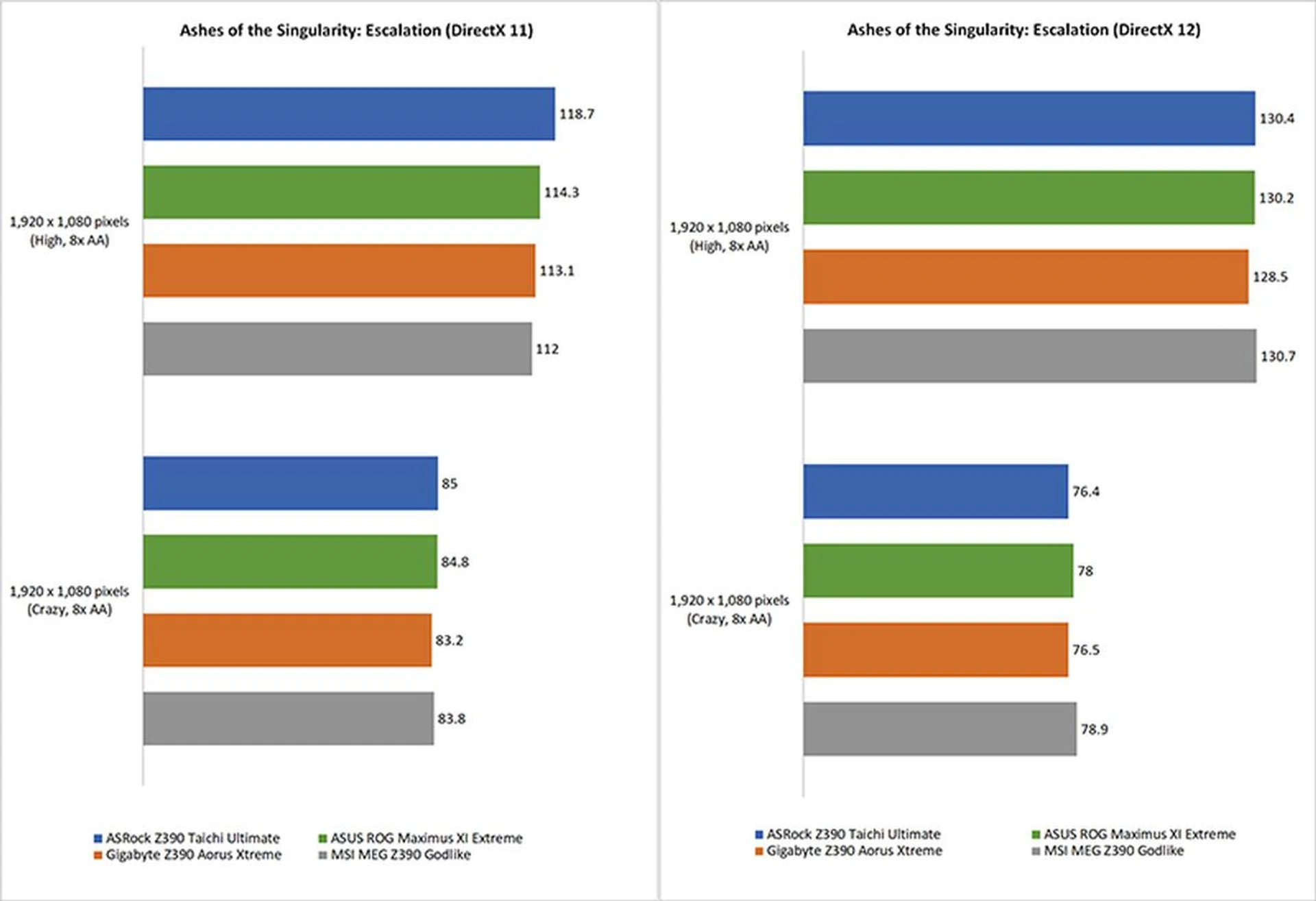 Motherboards have never played a super huge role in determining gaming performance, so it should really come as no surprise that the boards are so evenly matched here. Put simply, when you're choosing between these boards, it'll come down to things like design and features more than gaming performance.