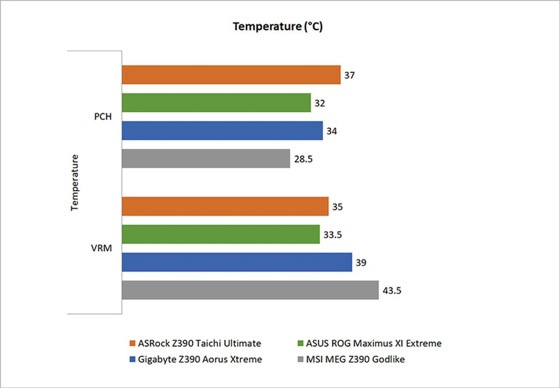 We measured the temperatures of the VRM and PCH heatsinks after running 40 loops of the 3DMark Fire Strike Stress Test. You’ll naturally want lower temperatures since it shows that the respective heatsinks are doing a more effective job of dissipating heat.