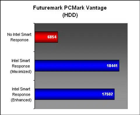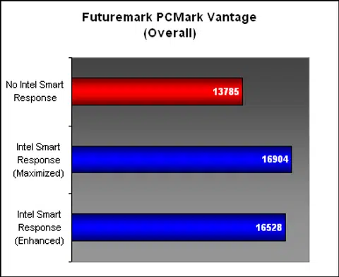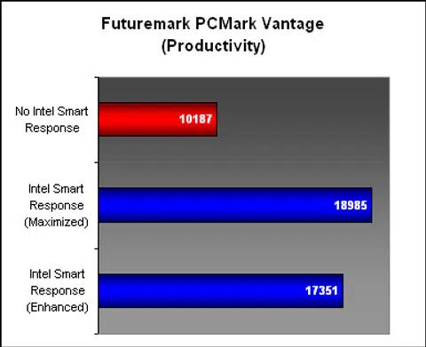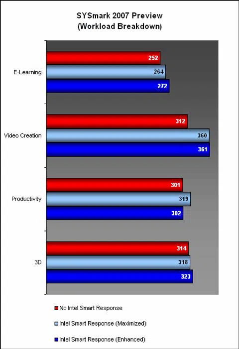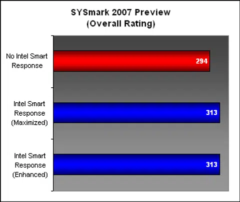 The question on everyone's lips is whether Intel Smart Response technology lives up to its promise. To find out, we tried out the two different modes, Enhanced and Maximized, with two system benchmarks, SYSmark 2007 and PCMark Vantage. They should provide a decent benchmark on the level of performance gain from the SSD cache.