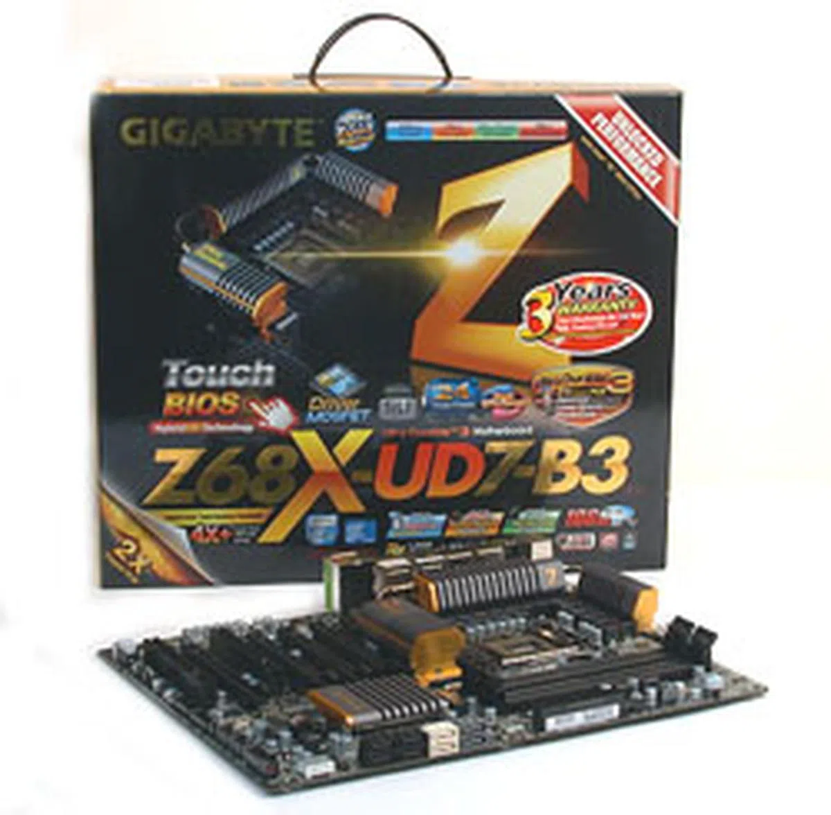 Gigabyte seems to believe that the more logos the better, with the packaging of this Z68 board festooned with them.
