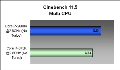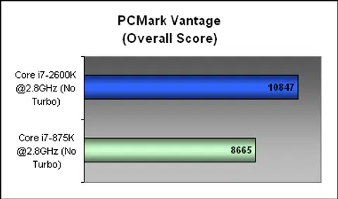 For this scenario, we took a Core i7-875K processor and downclocked it to 2.8GHz. We did the same for the Core i7-2600K and then we disabled Turbo Boost on both. The reason for choosing 2.8GHz is that both processors have different bus speeds (133MHz and 100MHz respectively) so we had to choose a clock speed which could be replicated on either side by changing the multipliers.