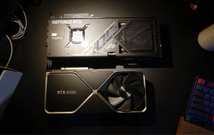 Here's another take of both RTX 4090 cards. I used to think the RTX Founders Edition are some of the best-looking cards around - and I still do - but I rank this Strix GeForce RTX 4090 right up there as well.