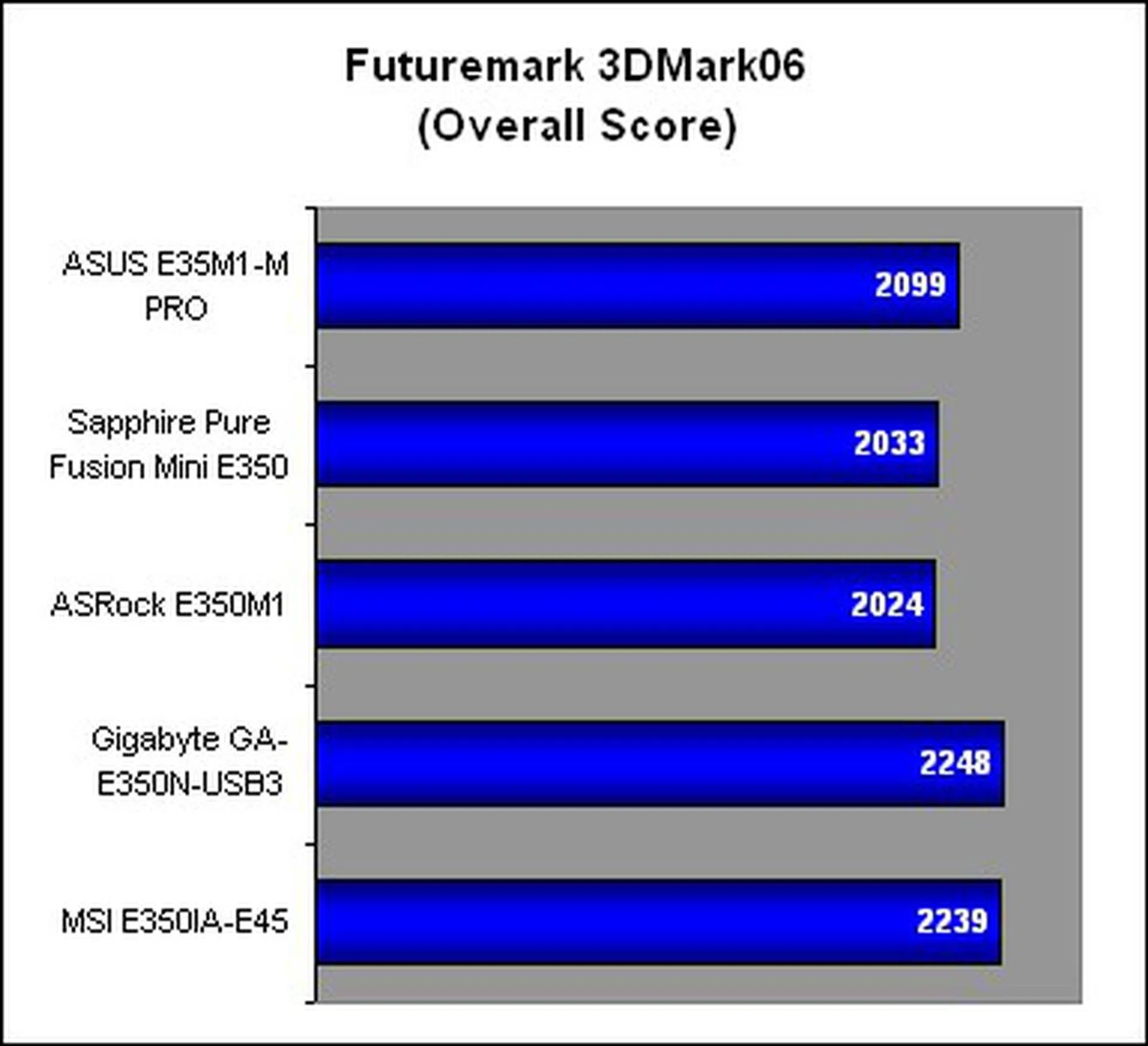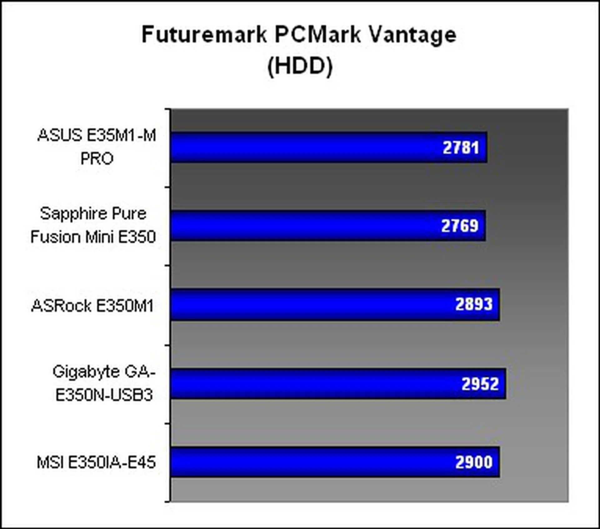 While the ASUS board was overall one of the better performers in PCMark Vantage, the Sapphire was rated the slowest. However, given the 3% difference between the two boards here, one could safely say that all five Brazos boards were very similar in performance. As you can tell from the modest PCMark scores, the Brazos platform is definitely entry-level caliber.