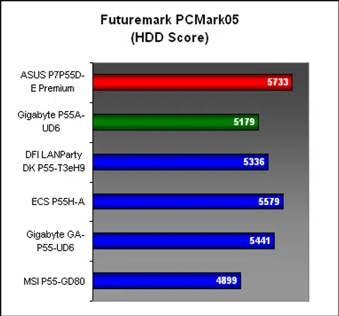 in the hard drive segment, the ASUS was surprisingly top overall here, especially since it did not stand out in the other areas. More so we're not using the new SATA 6Gbps drives or the controller yet. The Gigabyte UD6 also performed well overall, taking the second spot and ranking competitively in the CPU and memory segments.