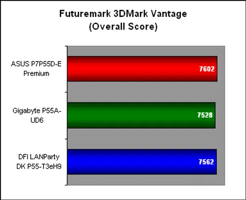 today, along with DFI's version. However, the results were quite predictable, with all the boards scoring similarly in Vantage. This was the same for the other graphics benchmarks. Despite whatever differences that were shown for the previous benchmarks, when it came to an actual real-world application like games, the differences were negligible.