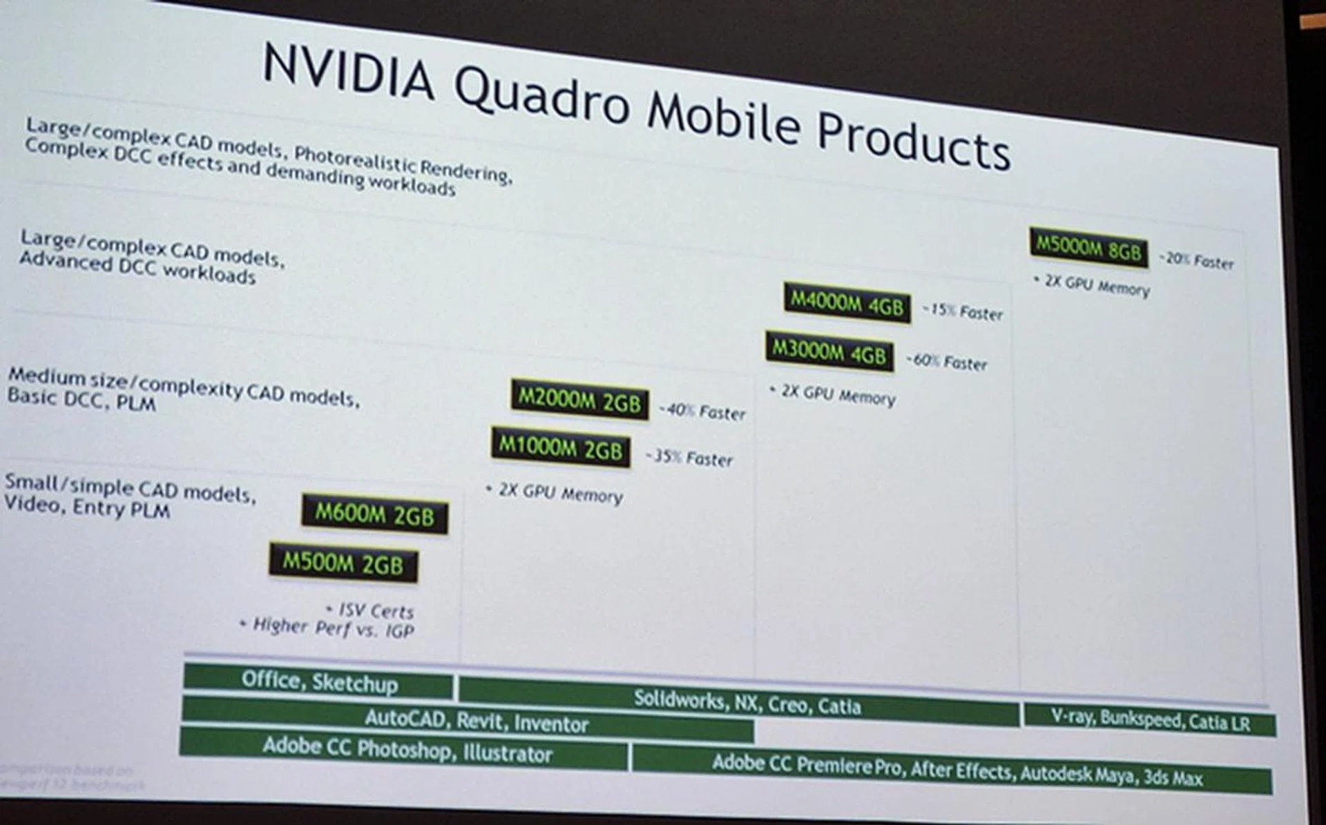 NVIDIA took the chance to show off its mobile Quadro chipsets and the top of the end chipset is the M5000M with 8GB of GDDR5 video memory.