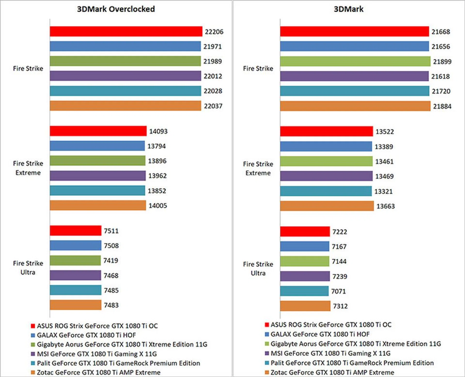 ASUS ROG Strix GeForce GTX 1080 Ti OC | GALAX GeForce GTX 1080 Ti HOF | Gigabyte Aorus GeForce GTX 1080 Ti Xtreme Edition 11G | MSI GeForce GTX 1080 Ti Gaming X 11G | Palit GeForce GTX 1080 Ti GameRock Premium Edition | Zotac GeForce GTX 1080 Ti AMP Extreme | |