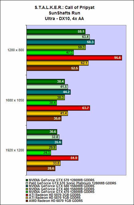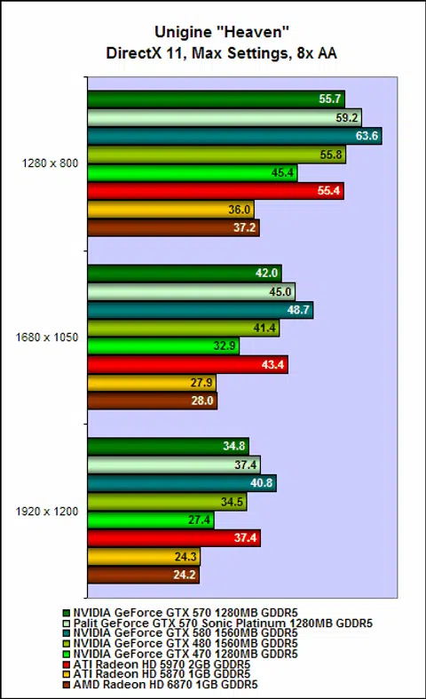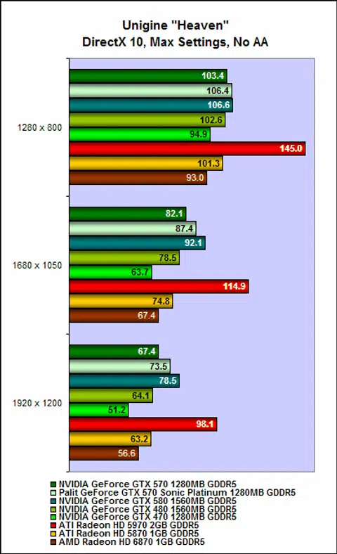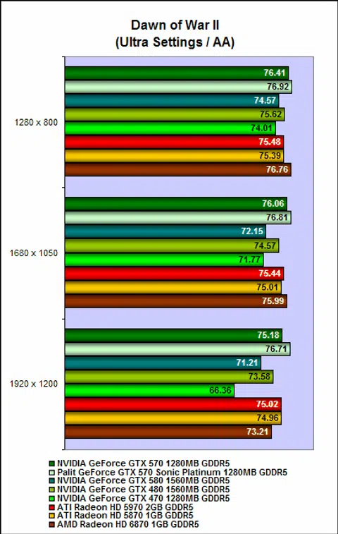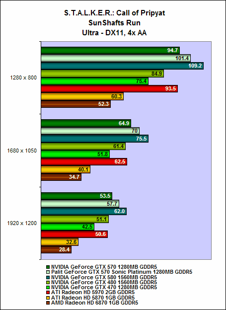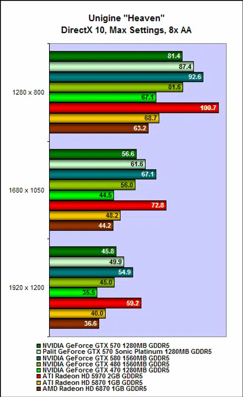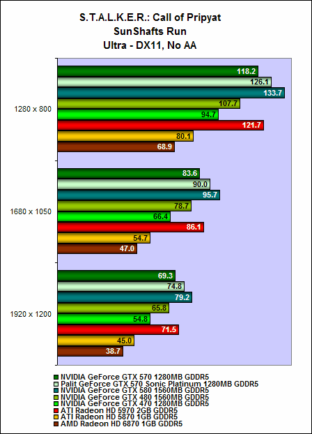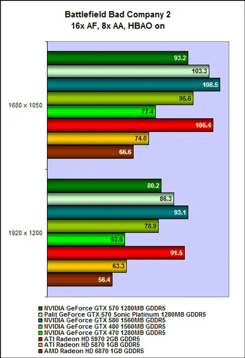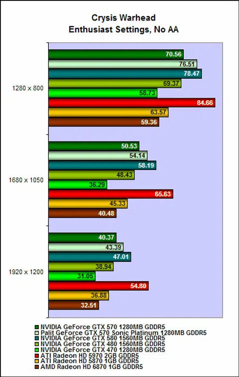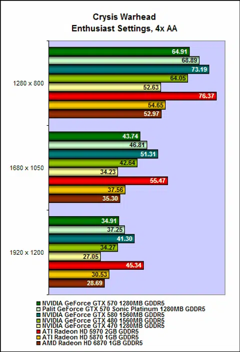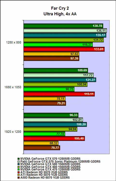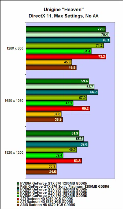 Lastly, the Palit GeForce GTX 570 Sonic Platinum recorded frame rates that were about 6% quicker than the reference card.
