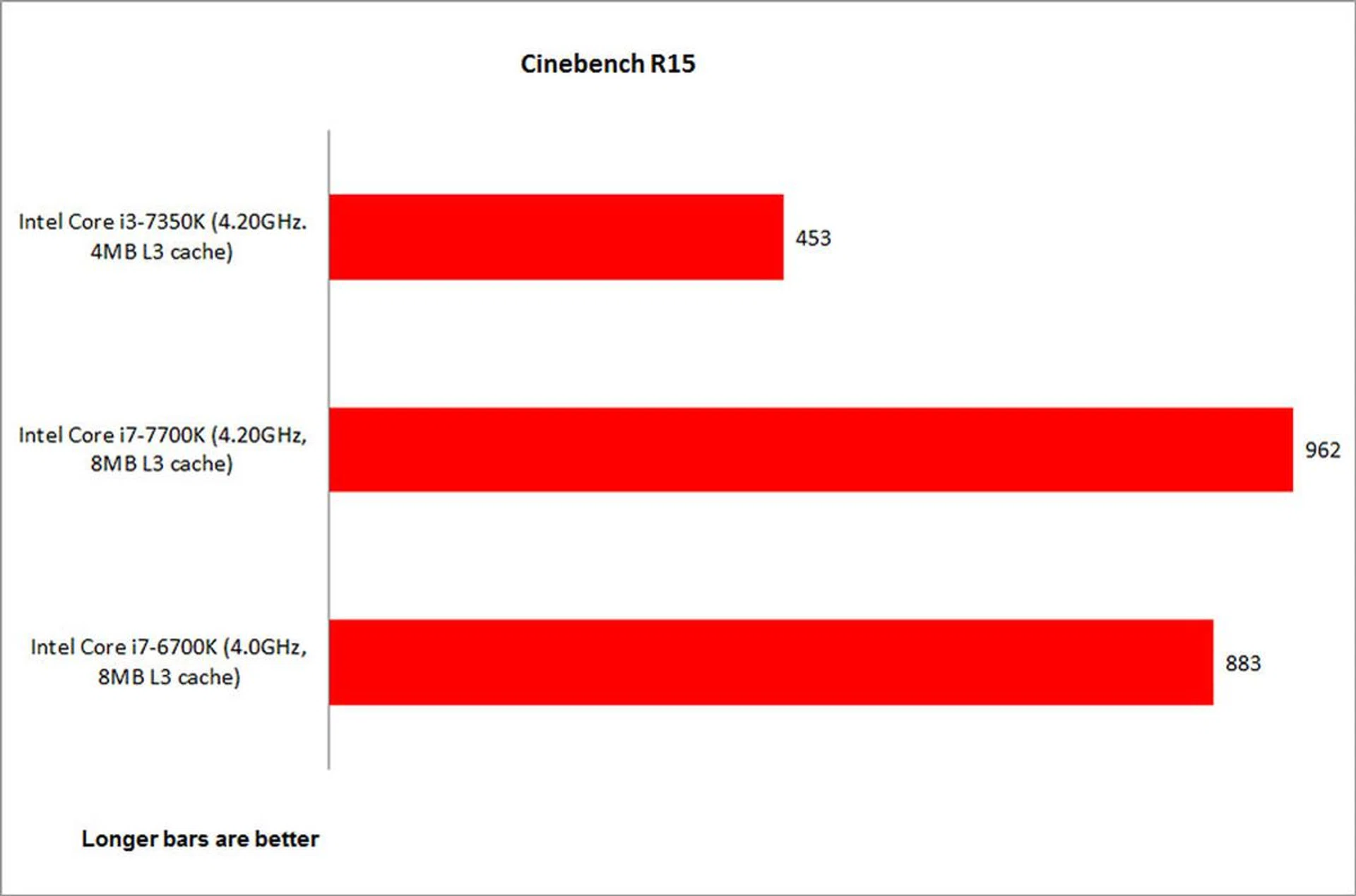The Core i3-7350K was around 53 per cent slower than the Core i7-7700K – that’s quite a significant difference, but not an unsurprising one given their respective places in the product stack.