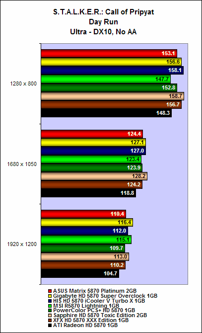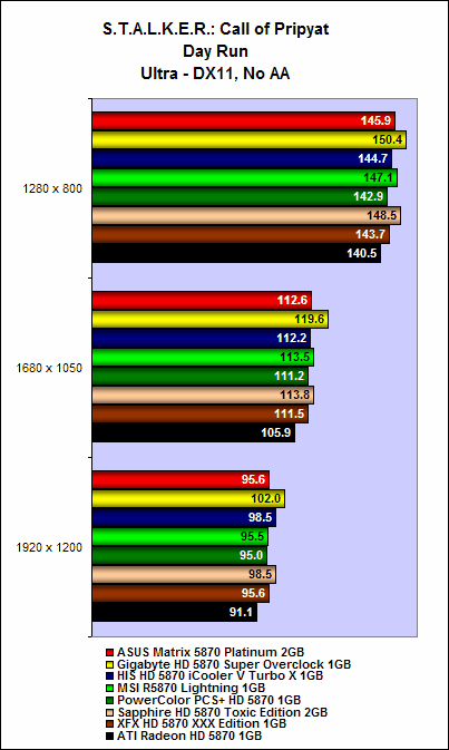 There was no clear leader on Dawn of War 2 as the cards all posted nearly identical results. Even a stock Radeon HD 5870 managed comparable scores.