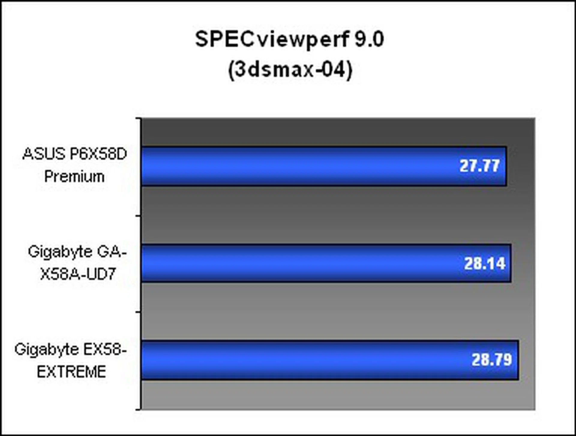 While all three boards were similar in 3dsmax, the PRO/ENGINEER segment in SPECviewperf 9.0 saw the two newer X58 boards justifying their upgraded status by beating the Gigabyte EX58-EXTREME by a fair amount.