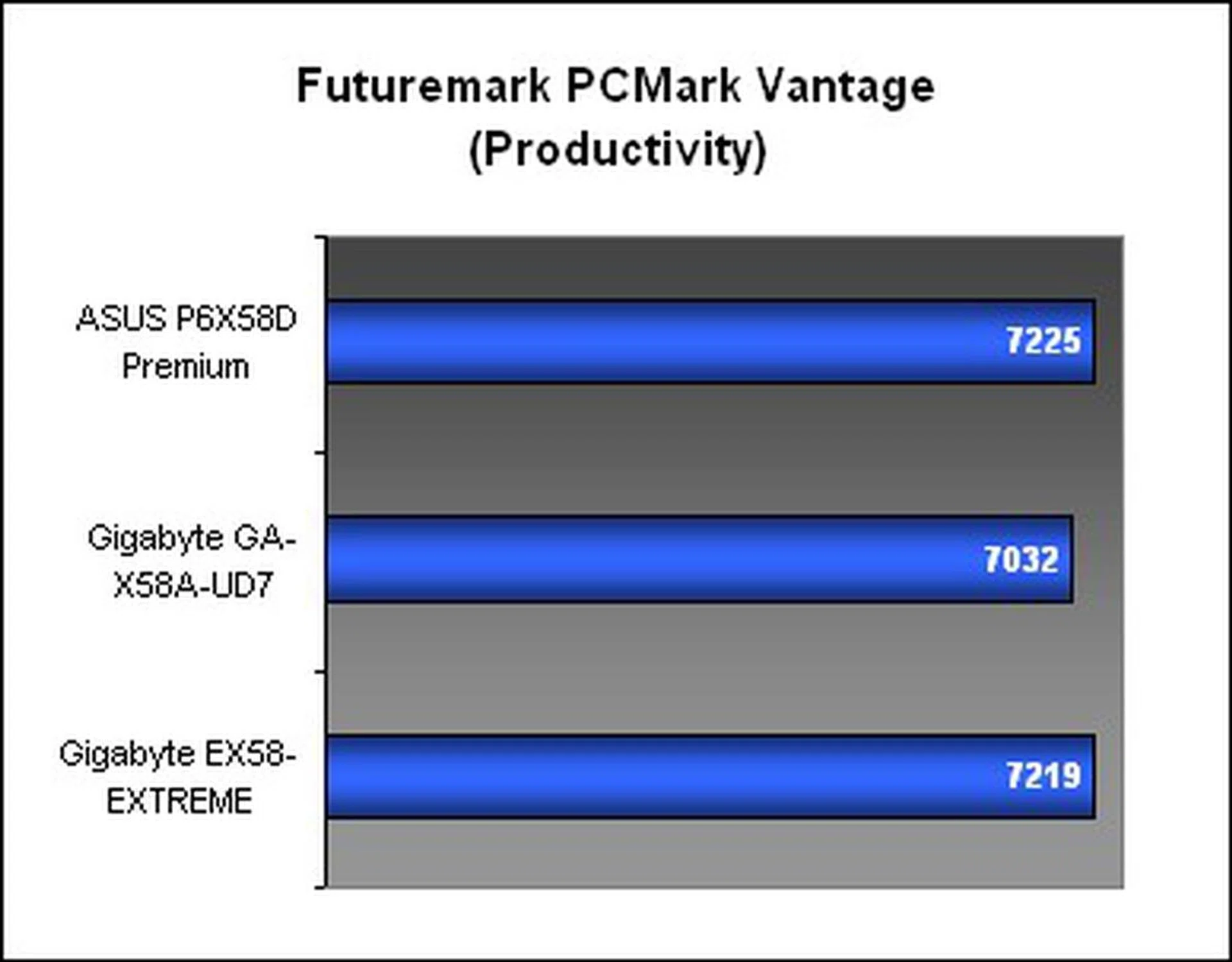 Surprisingly, we found the Gigabyte X58A-UD7 to finish slightly slower than the other boards here. Despite repeated tests, the results were identical and we found that the CPU portion of 3DMark Vantage for the Gigabyte UD7 was lower than usual.