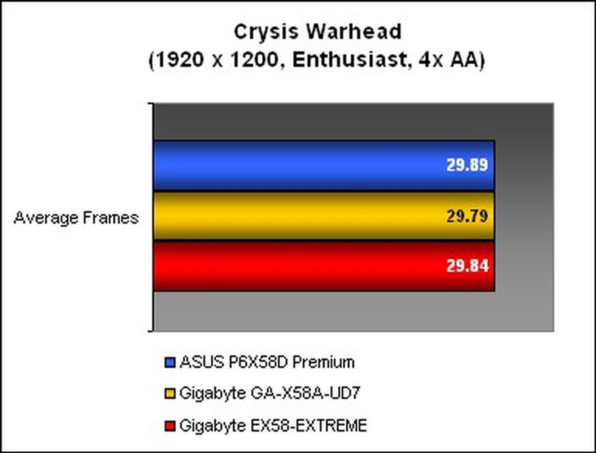 These gaming benchmarks allowed us to fully stretch these boards, as we ramped up the resolutions and settings. Crysis Warhead for example, really pushed these systems to their limits, as all three barely managed an average of 30fps - which still pinned the mighty Radeon HD 5870 as the bottlneck. A glance through the results showed identical scores for all.