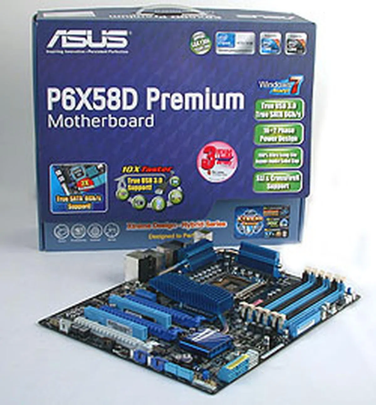 ASUS' recent blue streak continues with the P6X58D Premium, which comes in a few shades of blue.
