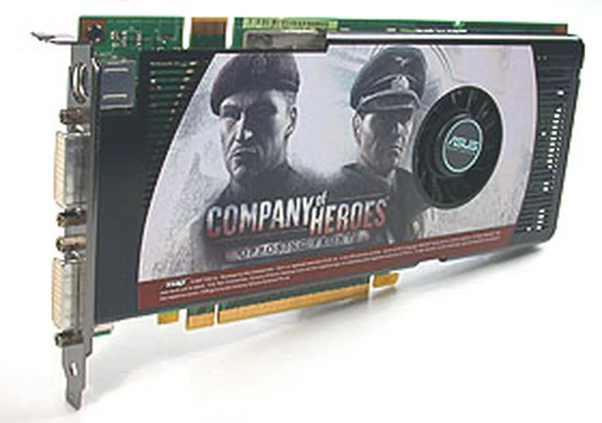 As usual, starting us off on our ten course feast of GeForce 8800 GT offerings in alphabetical order, we have the TOP edition from ASUS. Most of you should be familiar with ASUS' overclocked TOP edition, which typically boasts one of the highest clocks found for its SKU. This is the case for this ASUS GeForce 8800 GT, with a core clocked at 700MHz and a memory frequency of 2000MHz DDR, making it joint fastest in our roundup. With its standard cooler however, it looks no different from its competitors, distinguished only by a Company of Heroes: Opposing Front decal.