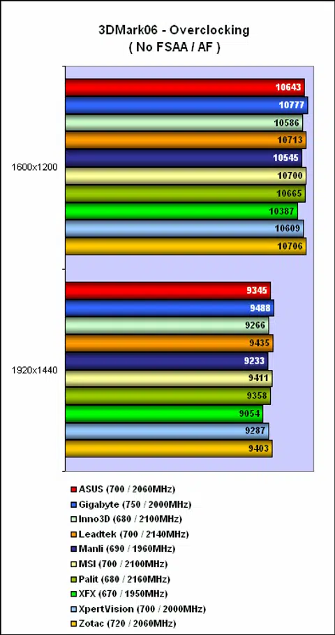 While a synthetic benchmark like 3DMark06 has often taken flak from enthusiasts on a number of issues, from relevance to neutrality, there is no doubt that it does manage to distinguish adequately between small differences in clock speeds. This is exactly the situation that we find ourselves in with these 10 GeForce 8800 GTs, where the differences may well boil down to 10MHz in core clocks.