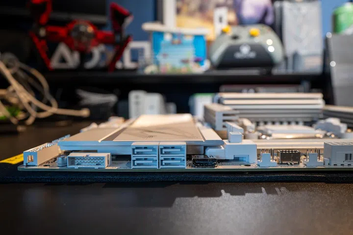 The motherboard comes with four DDR5 slots that that supports a maximum of 256GB of RAM and the DDR5 8000 standard when overclocked.