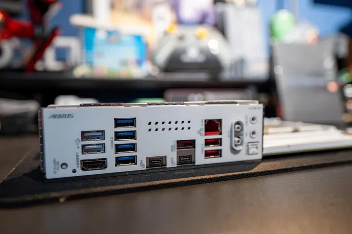 The Gigabyte X870E Aorus Pro Ice may looks like a "white" version of the brand's flagship X870E Aorus Master motherboard but there are some notable differences. For instance, the I/O Aorus lighting here is more subtle.