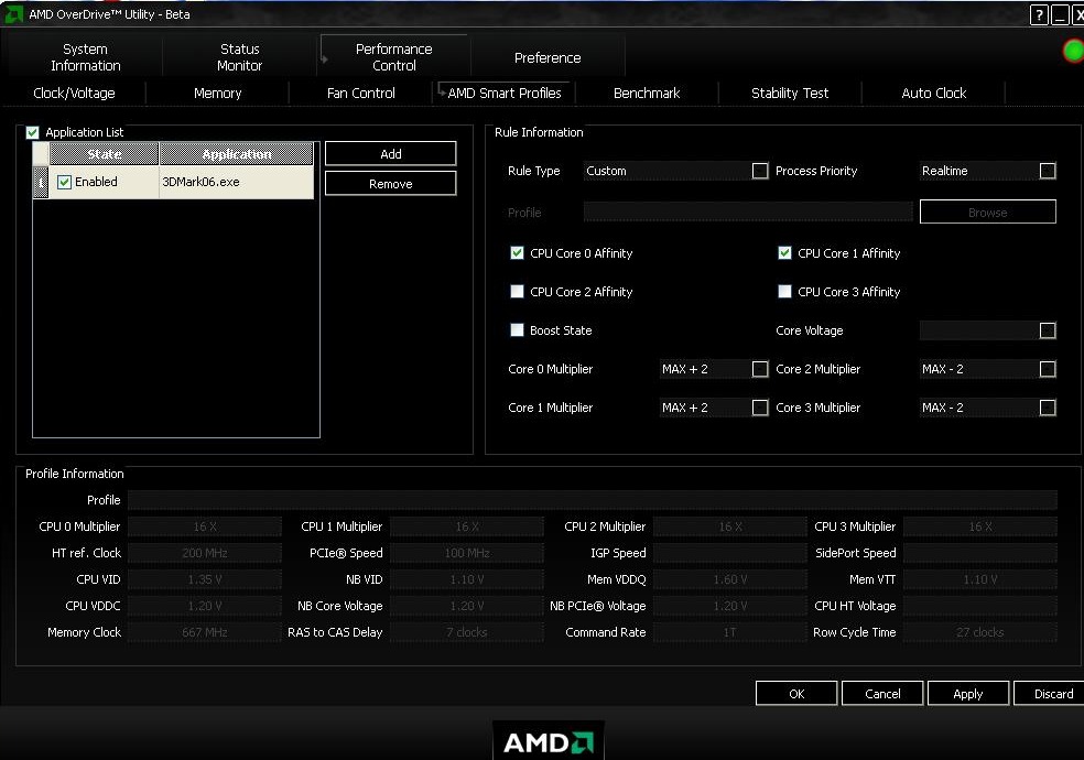 Yet another notable improvement of the latest AOD 3.0 build is the incorporation of AMD Smart Profiles. This feature has some semblance of the Core i7 processor's turbo function which allows users to set each core's multiplier settings depending on the number of cores loaded. While Intel's function is set a BIOS level and is a little more straightforward, AMD's software approach allows flexibility and is defined by various program profiles. The main function of these smart profiles is to empower the users if they want a particular program at its maximum performance or invoke performance savings by self-setting each core's multiplier settings and saving these profiles. While some of the profiles are pre-loaded on the latest build, you can add/remove profiles as you deem fit.