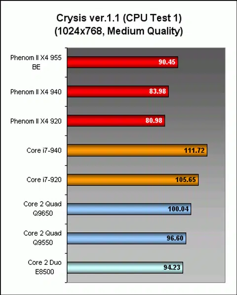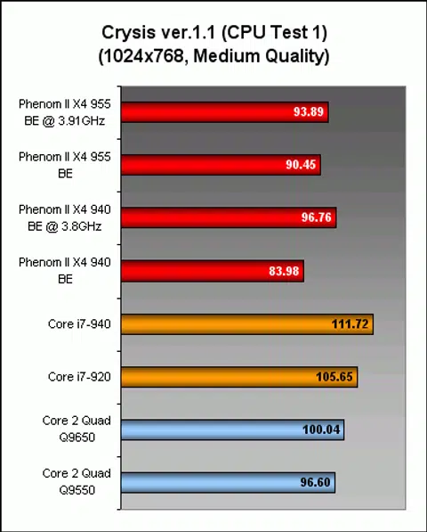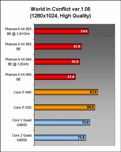 Unfortunately, the Phenom II X4 955 couldn't yet outshine the Intel competition yet when it came to gaming. Despite that note, it was actually just 6% slower than the Core 2 Quad 9550 processor and that's a marked improvement considering previous performance attempts by other Phenom processors.