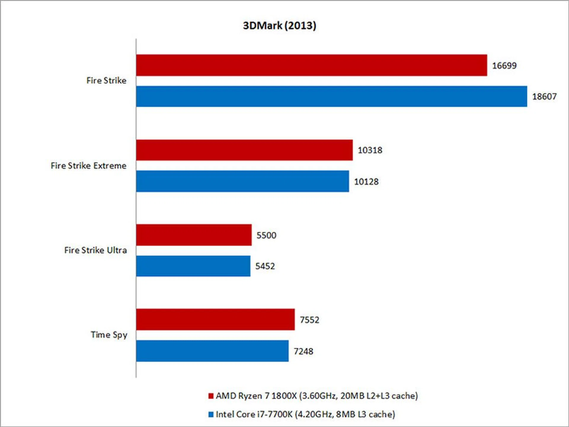 3DMark test suites / Processor models | AMD Ryzen 7 1800X | Intel Core i7-7700K | Intel Core i7-6950X |