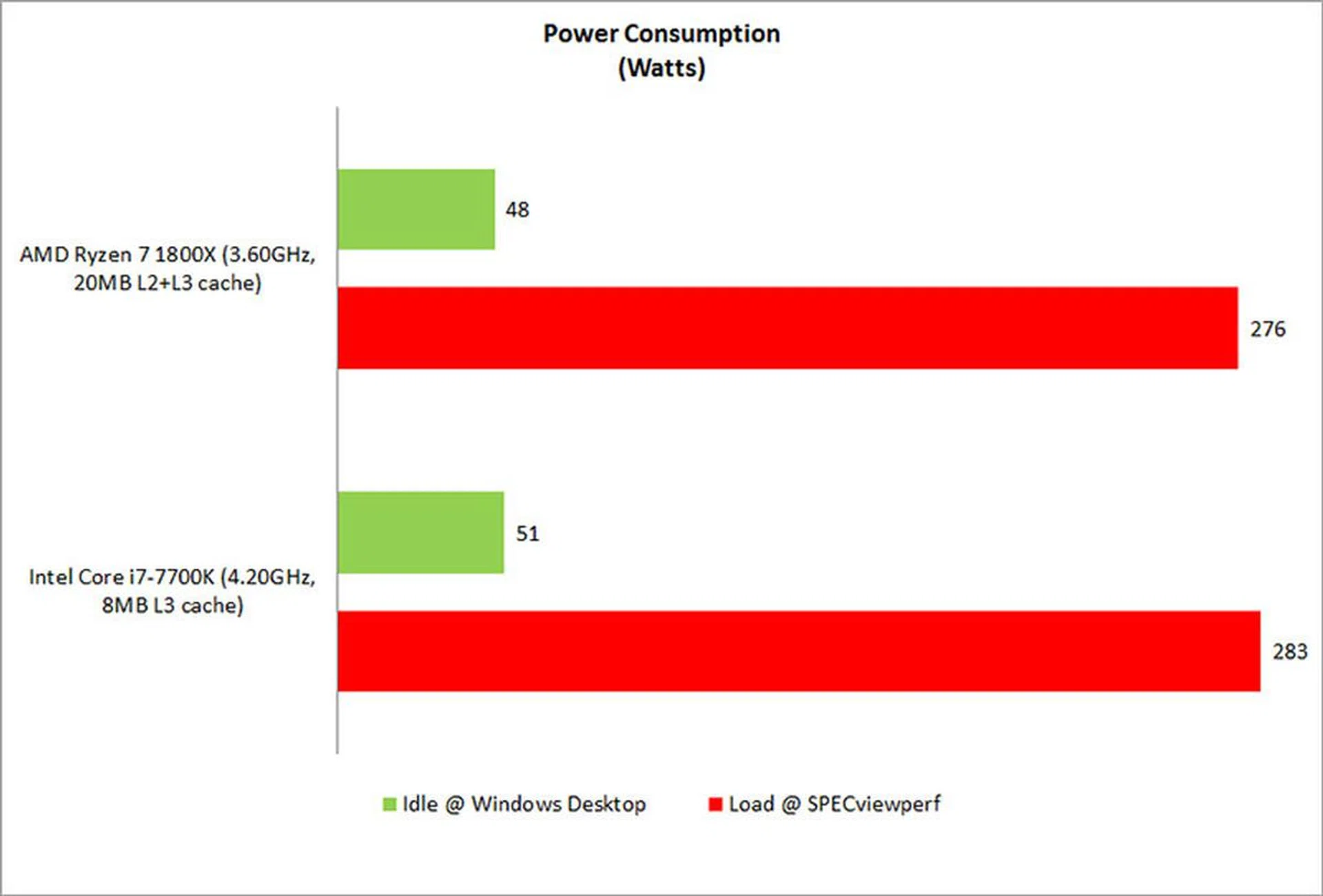 Power consumption figures were rather close across the processors, but it's nice to see Ryzen's 8-core chip consuming slightly less power than the quad-core Core i7-7700K. Ryzen's Pure Power and Precision Boost features are capable of modulating frequency, voltage, and temperature on-the-fly, and that appears to have worked out here. For once, it seems like AMD's power consumption figures are about on par with Intel's - but it's subjective when it comes to performance-per-watt comparisons since AMD isn't exactly leading in raw performance although it has put up a good show.
