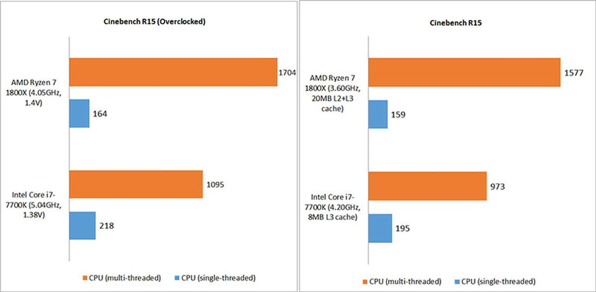 So while the Intel chips clock higher and will probably lead in the moderately threaded workloads as seen from some of the earlier non-overclocked results, the AMD Ryzen 7 1800X still has a significant lead in performance. This again suggests that AMD Ryzen excels well in applications that are highly designed to scale with the presence of multiple cores/threads even though it couldn't be clocked as much.