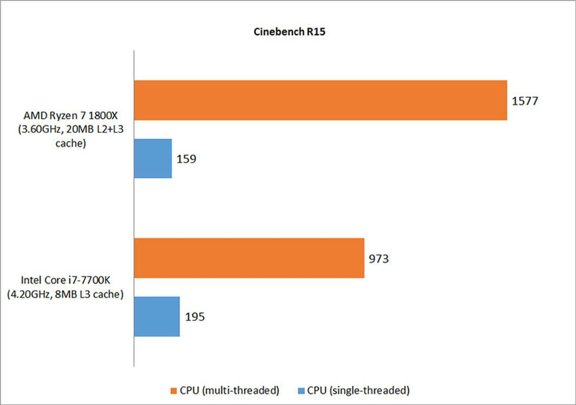 Cinebench R15 / Processor models | AMD Ryzen 7 1800X | Intel Core i7-7700K | Intel Core i7-6950X |