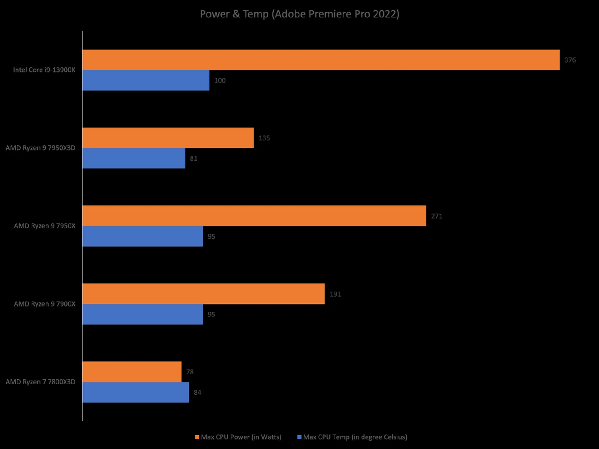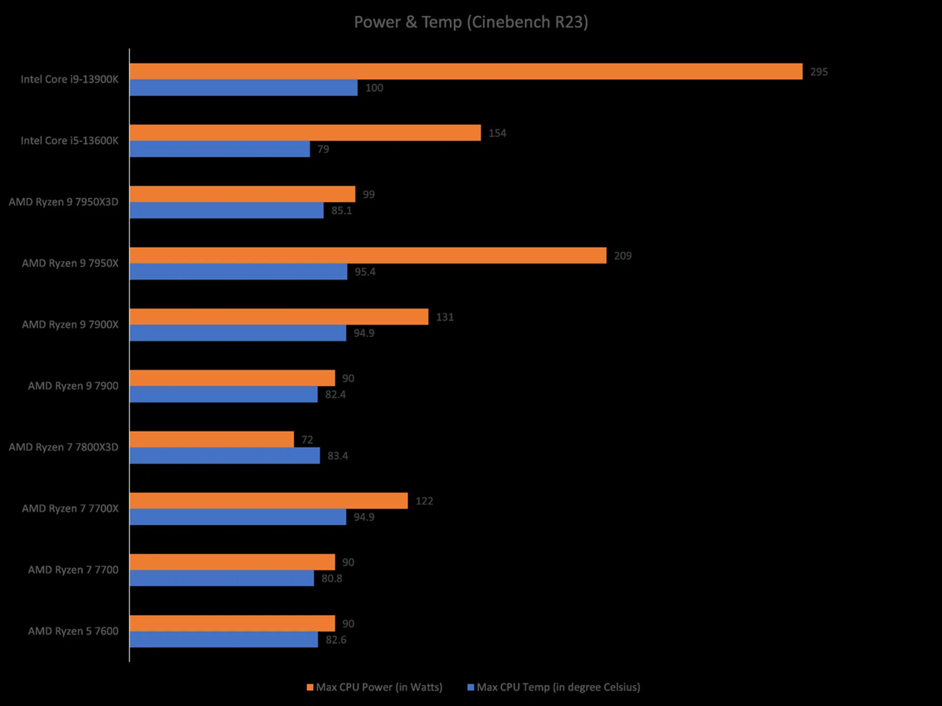 Speaking of power usage, the efficiency of the 7800X3D is truly remarkable. In my tests, I found that the processor's peak power draw was significantly lower than that of not just its Intel competitors, but even the 7950X3D. For example, while running Cinebench R23, the 7800X3D's CPU power reached a peak of 72W, compared to the 295W drawn by Intel's i9-13900K for the same task. Additionally, the 7800X3D's maximum temperature during the same Cinebench run was 83.4 degrees Celsius, significantly lower than the i9-13900K's 100 degrees Celsius or the 7950X3D’s 99 degrees Celsius.