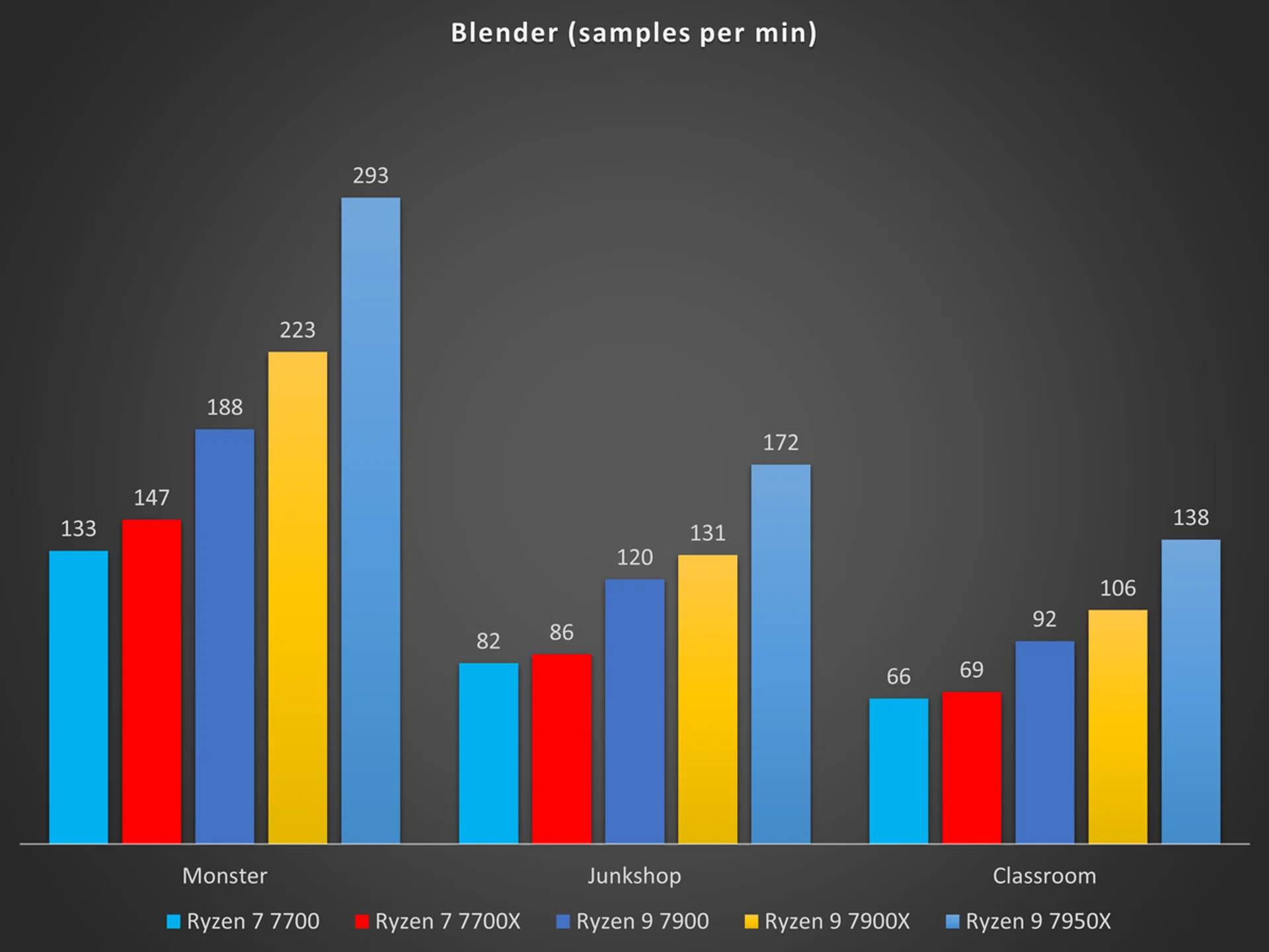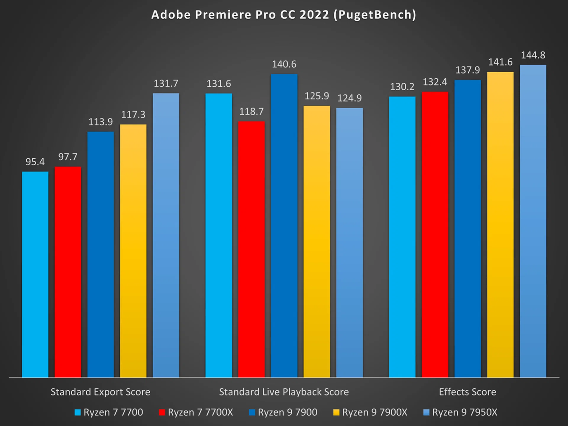 The 12-core Ryzen 9 7900, in particular, has excellent efficiency, almost double that of the similar 7900X, thanks to its lower power envelope, lower operating temperature and offering very similar performance capability.