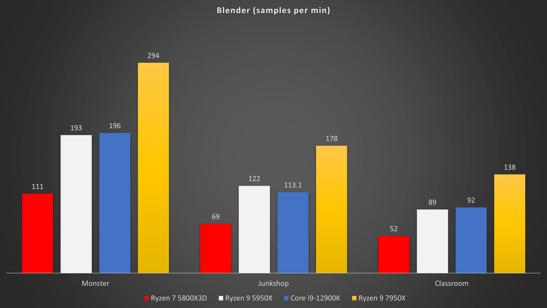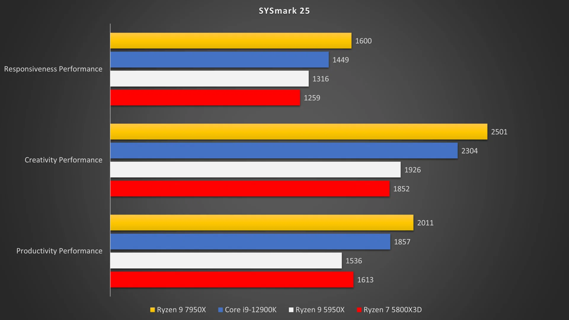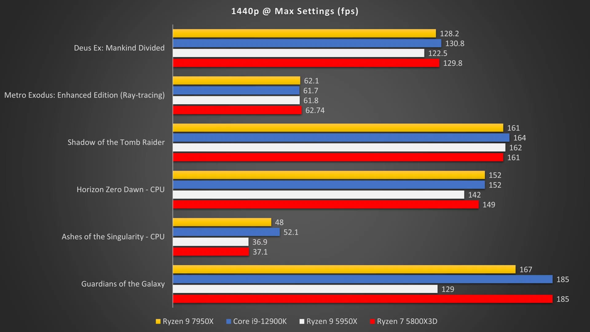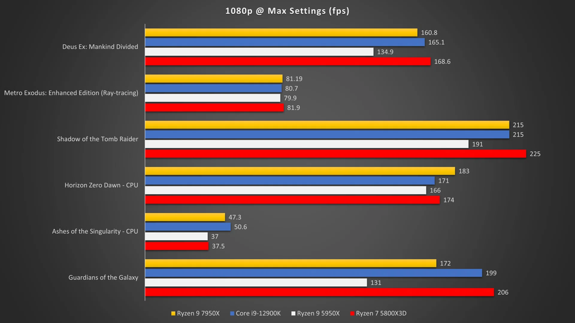 AMD Ryzen 9 7950X | AMD Ryzen 9 5950X | AMD Ryzen 7 5800X3D | Intel 12th Gen Core i9-12900K | |