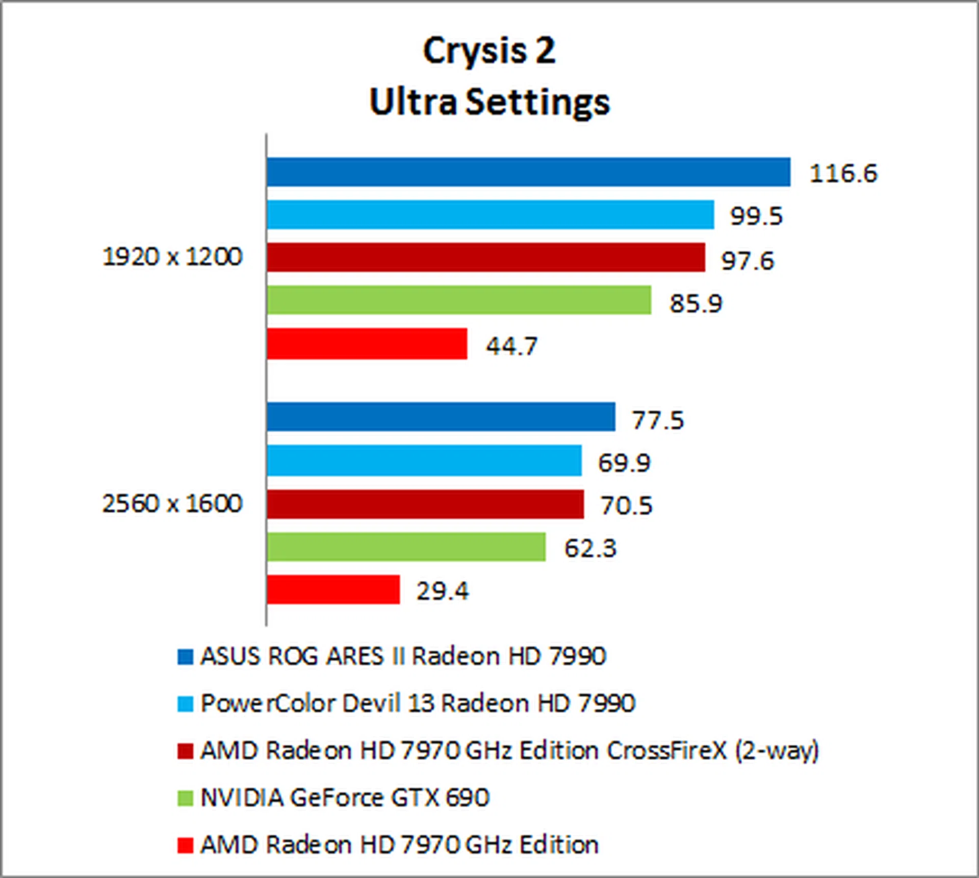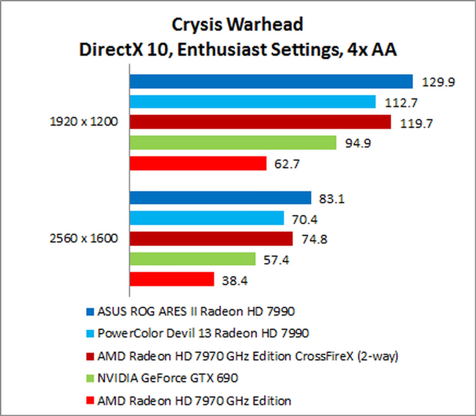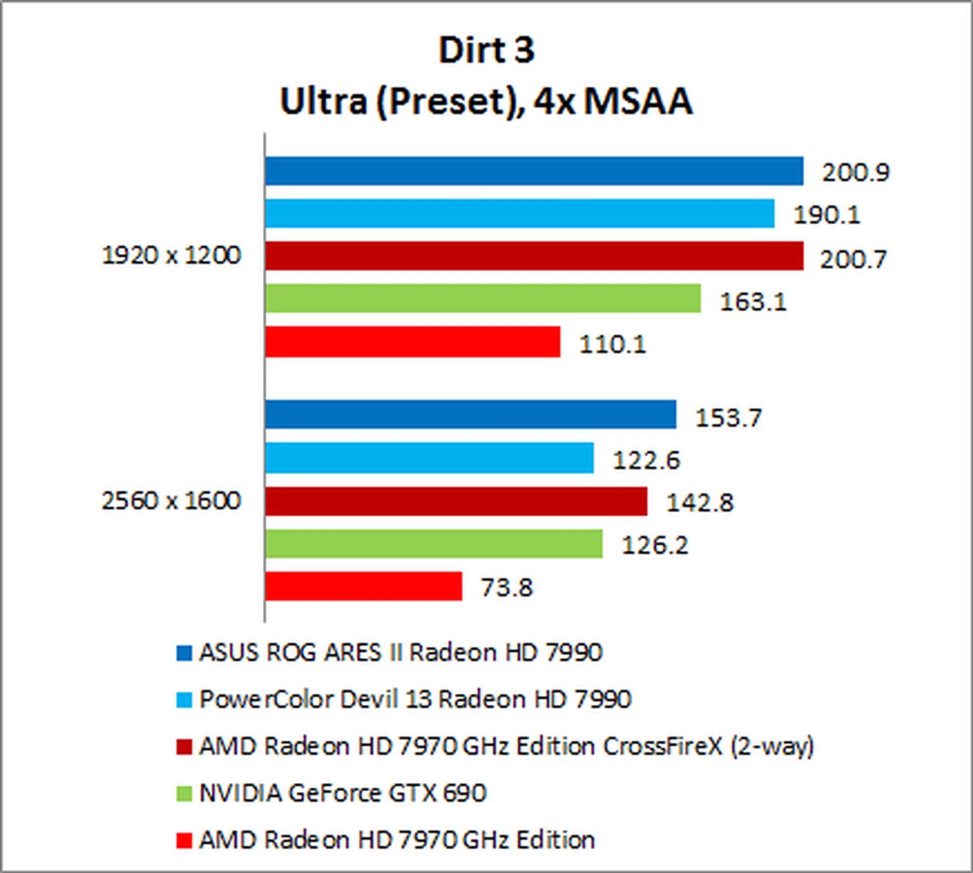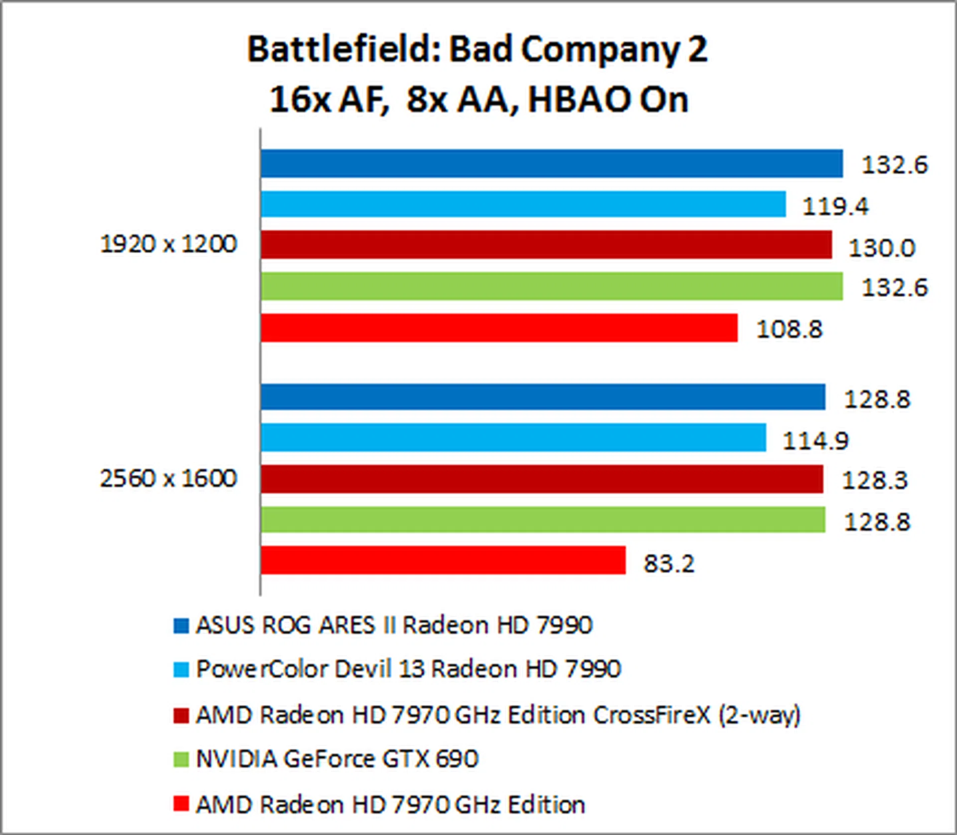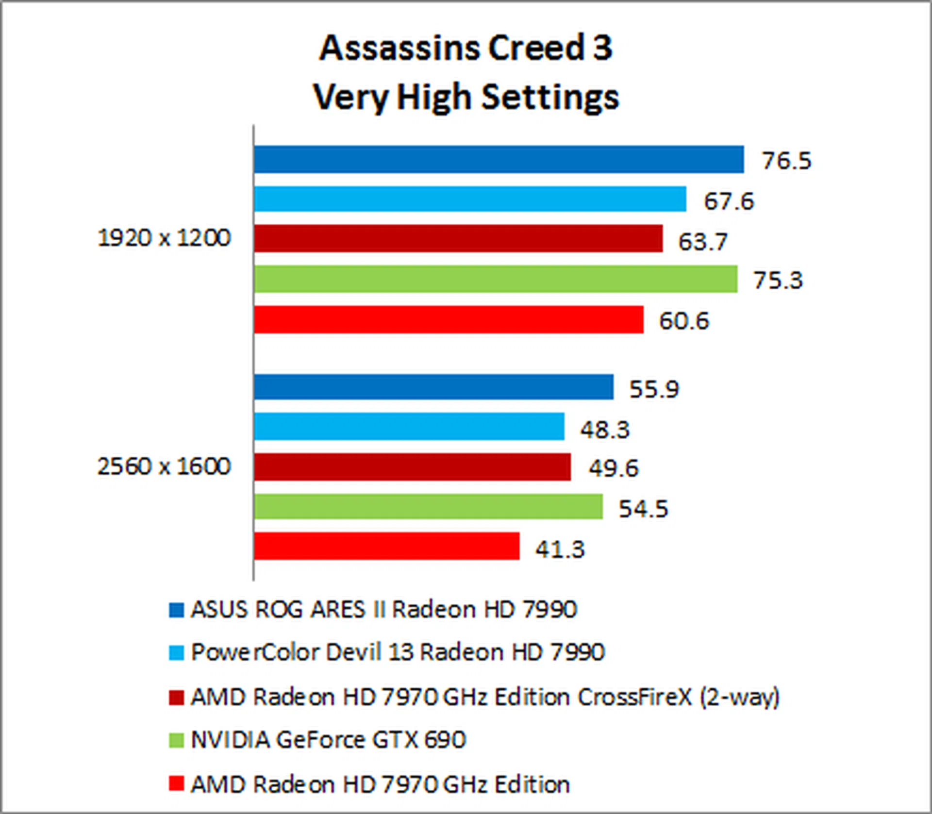 The NVIDIA GeForce GTX 690 put in a surprisingly weak performance, trailing the ARES II by as much as 35% on 1920 x 1200.