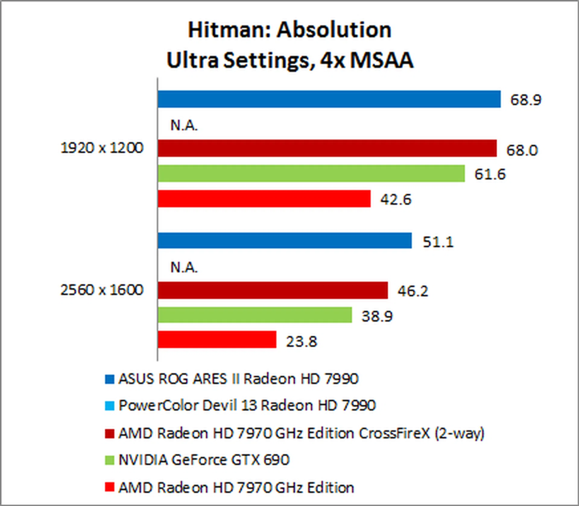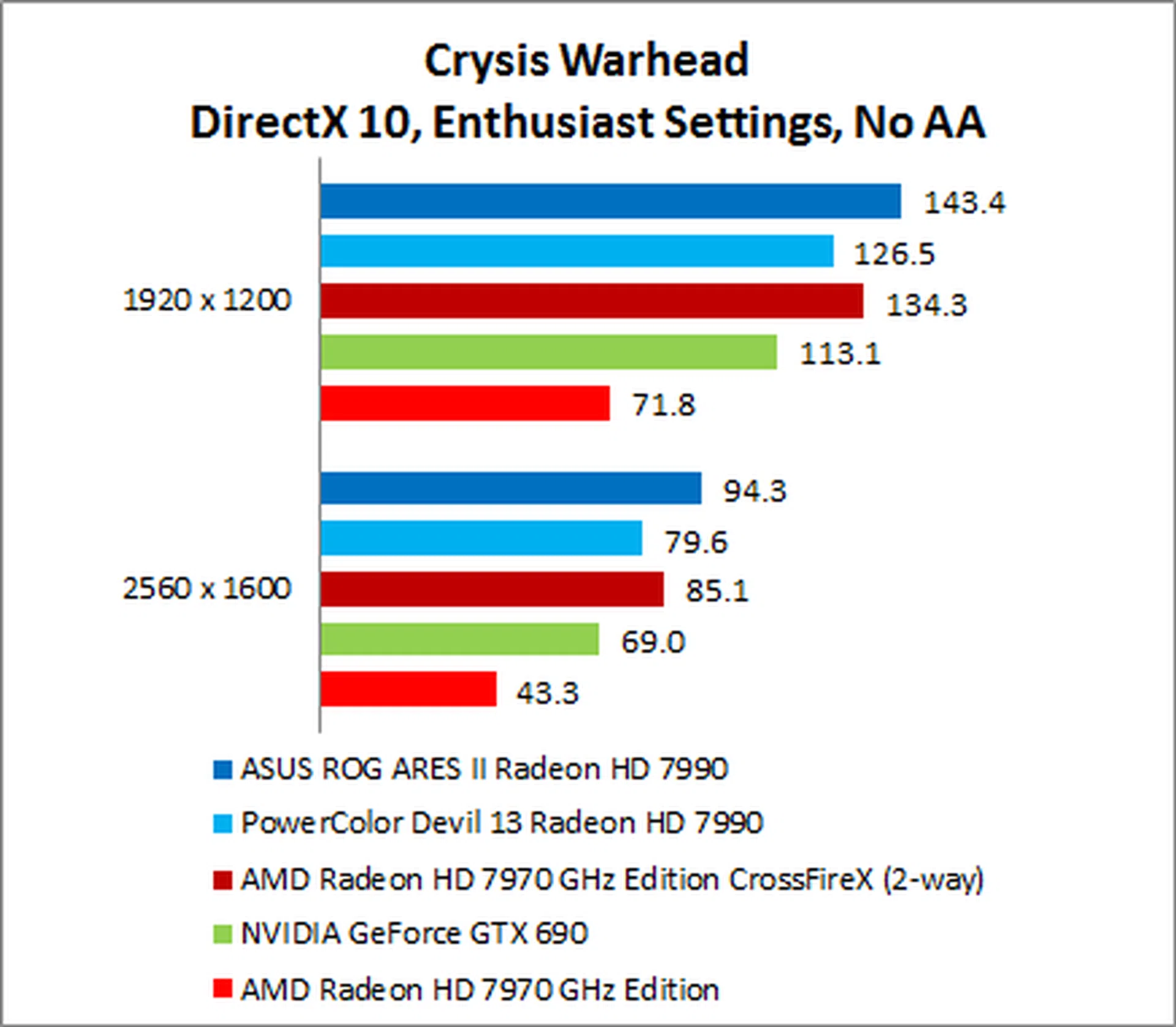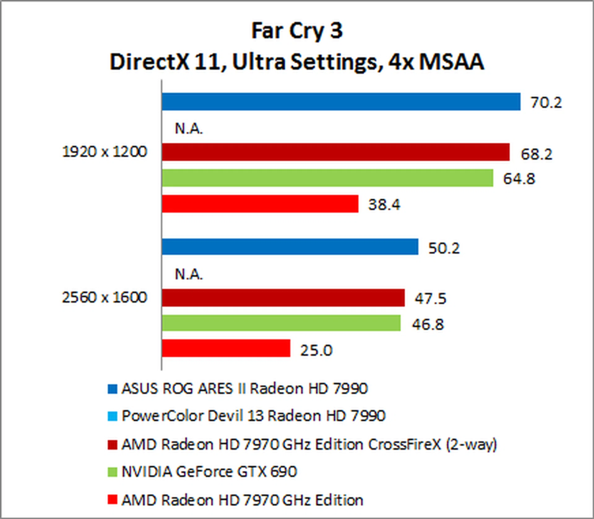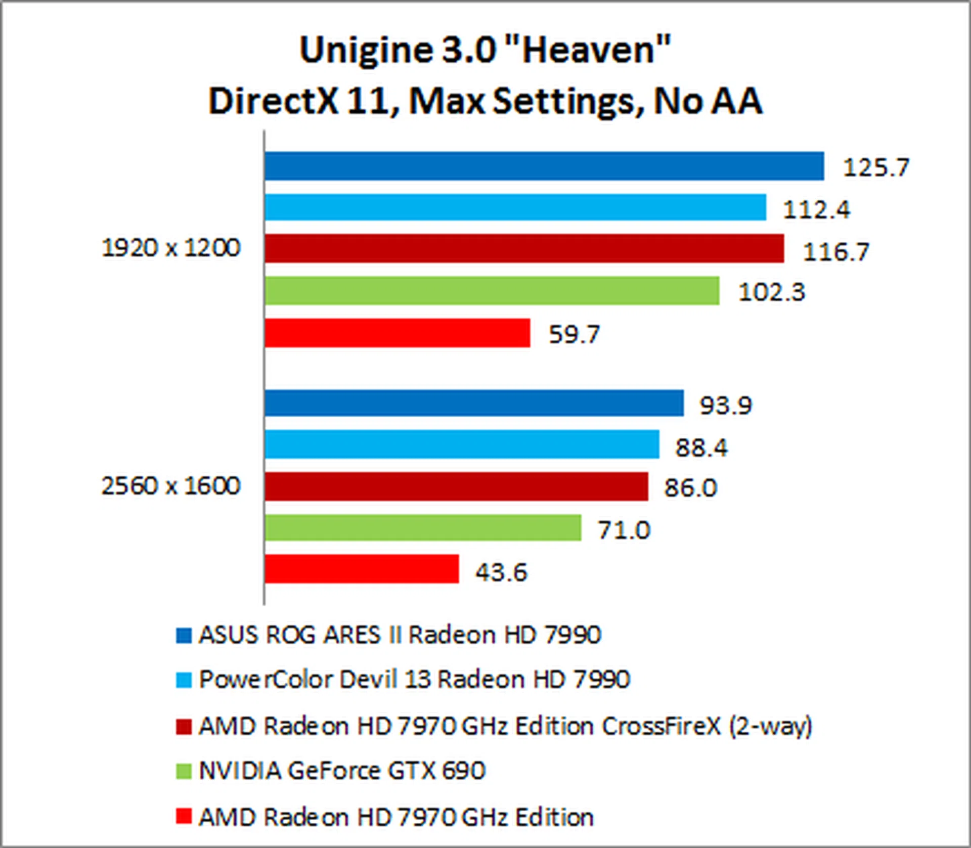 The NVIDIA GeForce GTX 690 put in a surprisingly weak performance, trailing the ARES II by as much as 35% on 1920 x 1200.