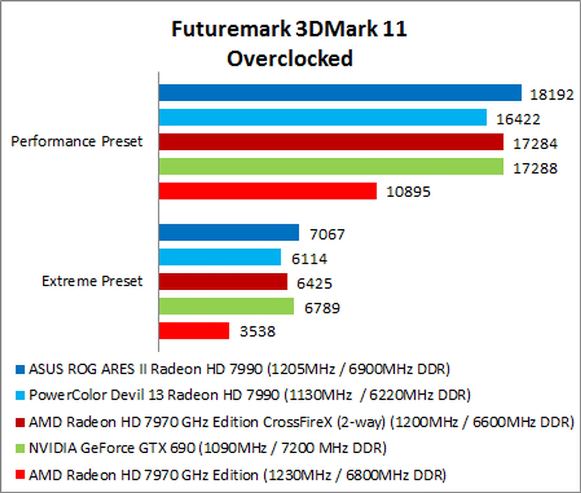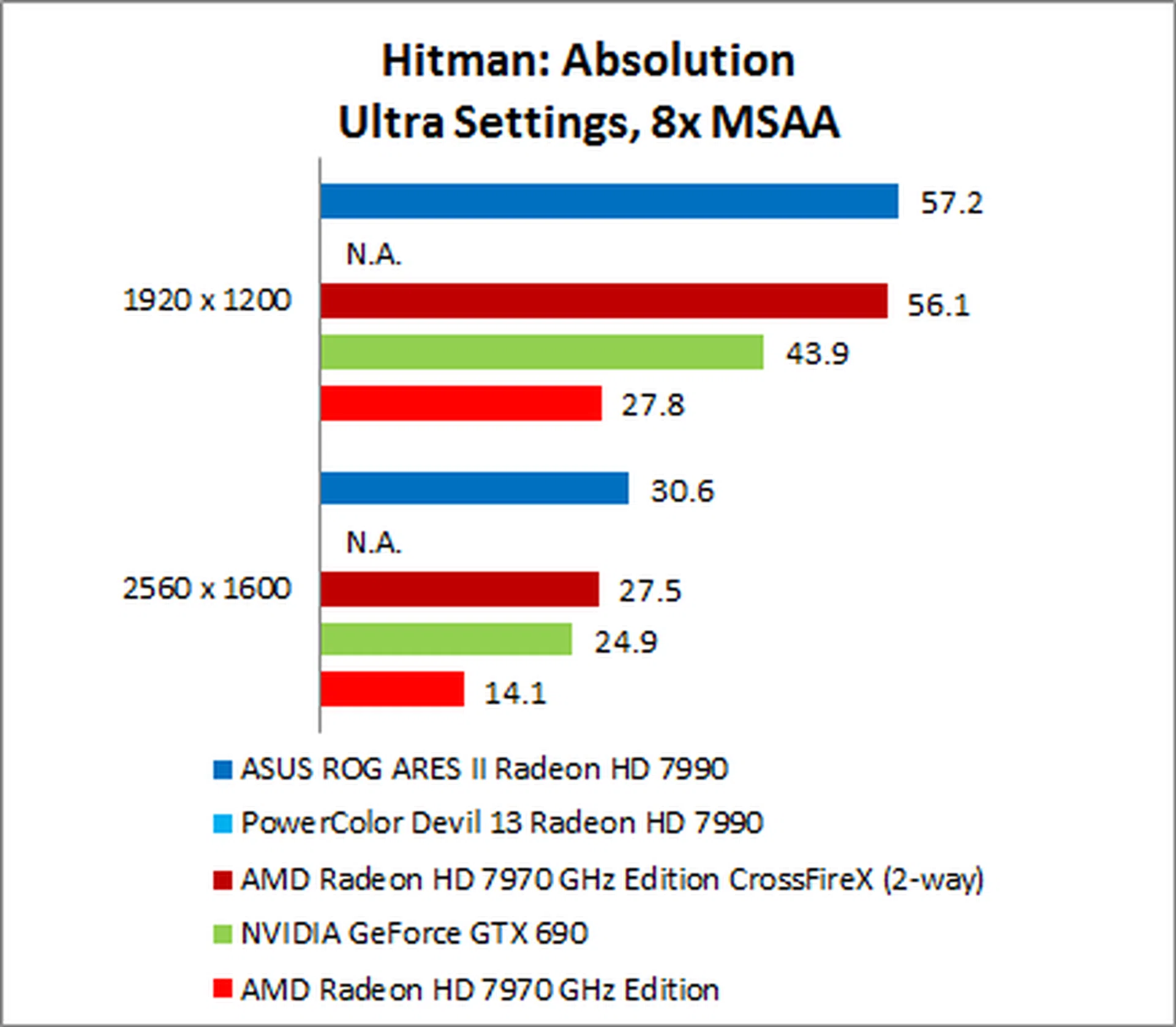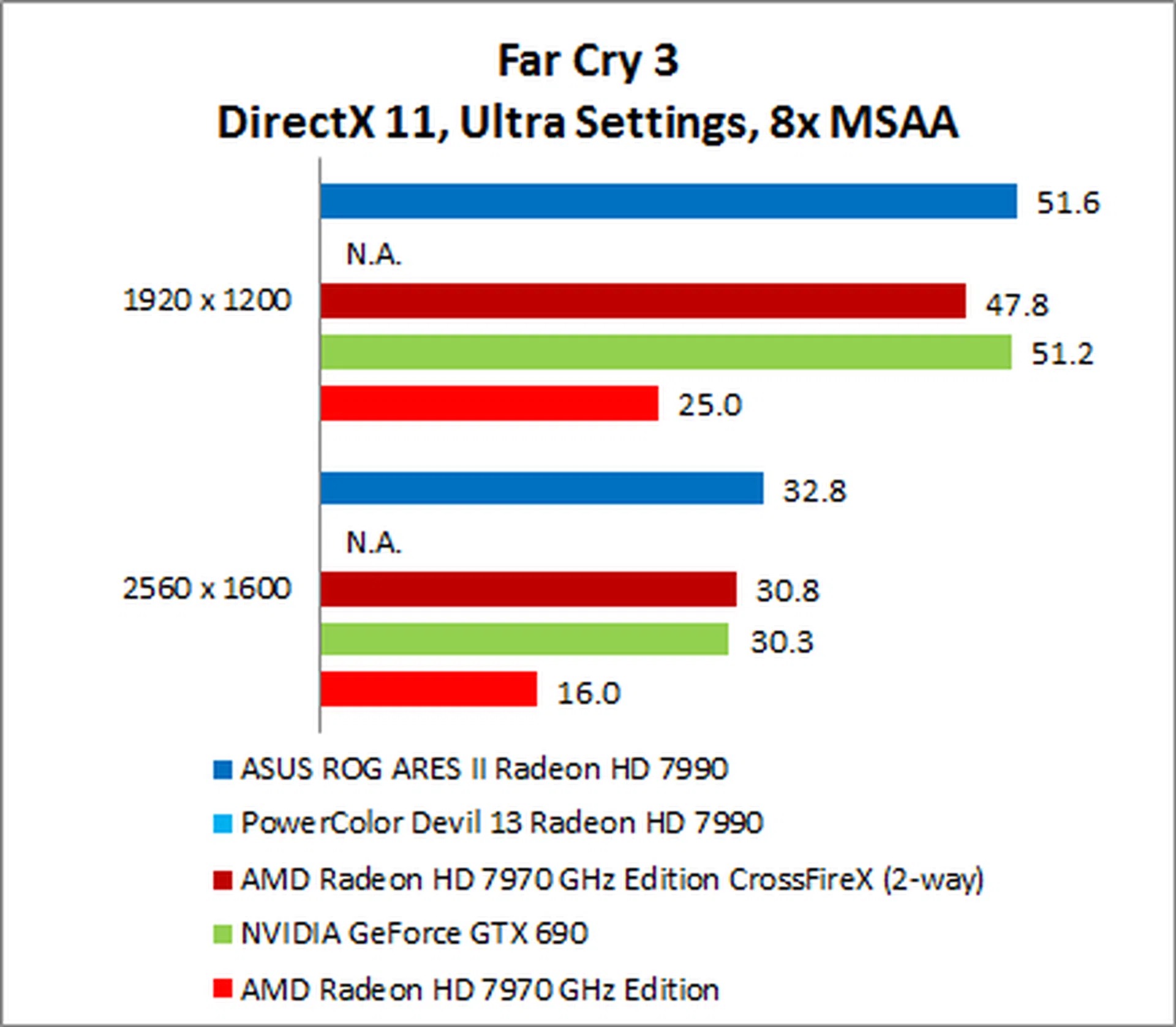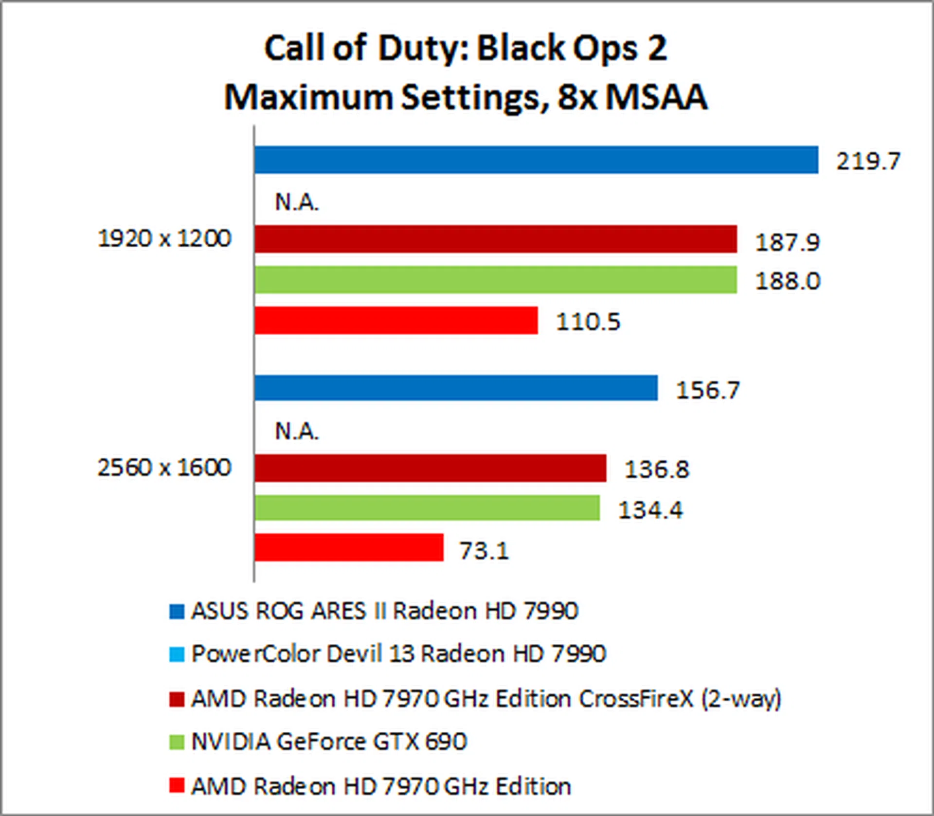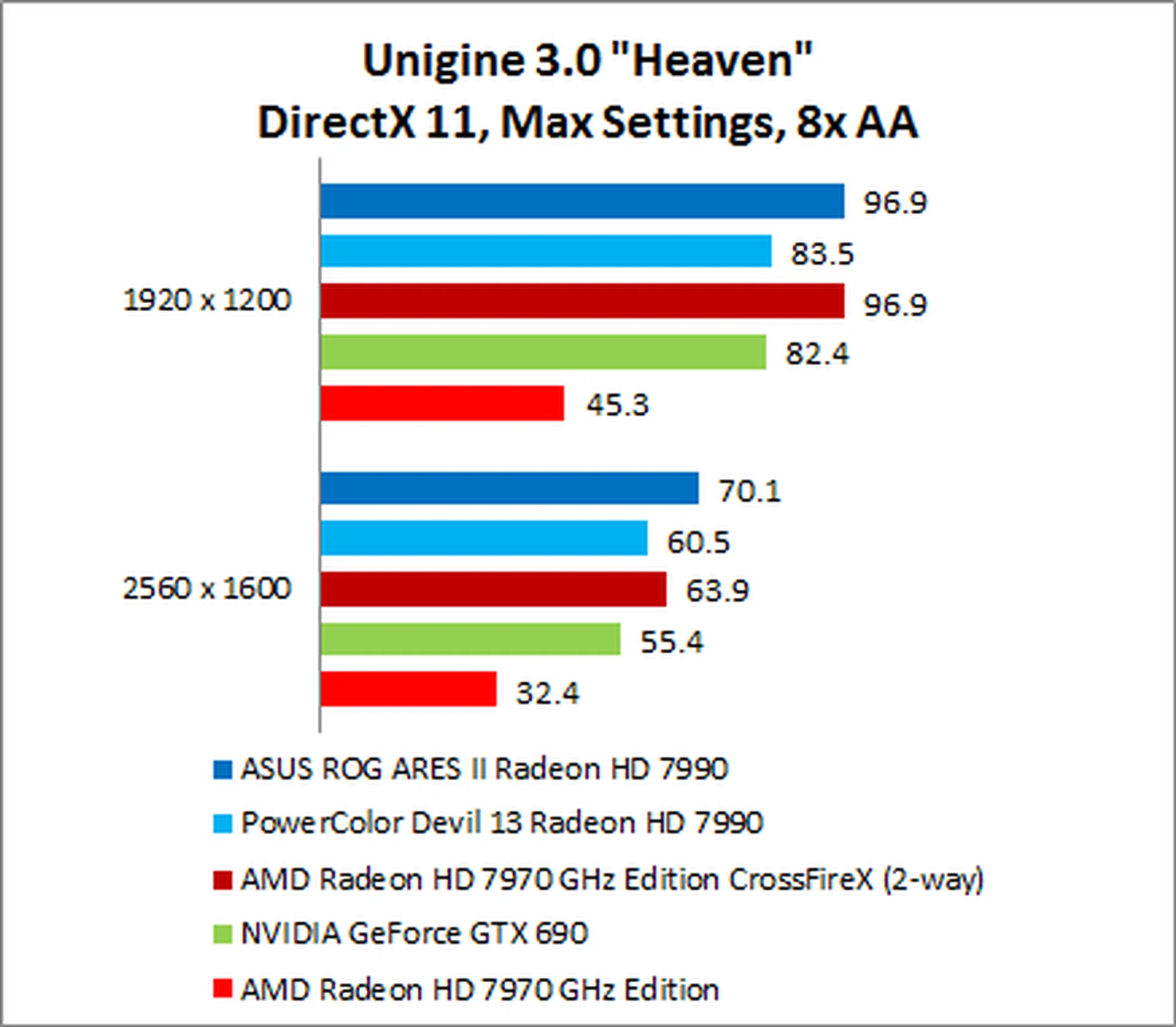 The NVIDIA GeForce GTX 690 put in a surprisingly weak performance, trailing the ARES II by as much as 35% on 1920 x 1200.