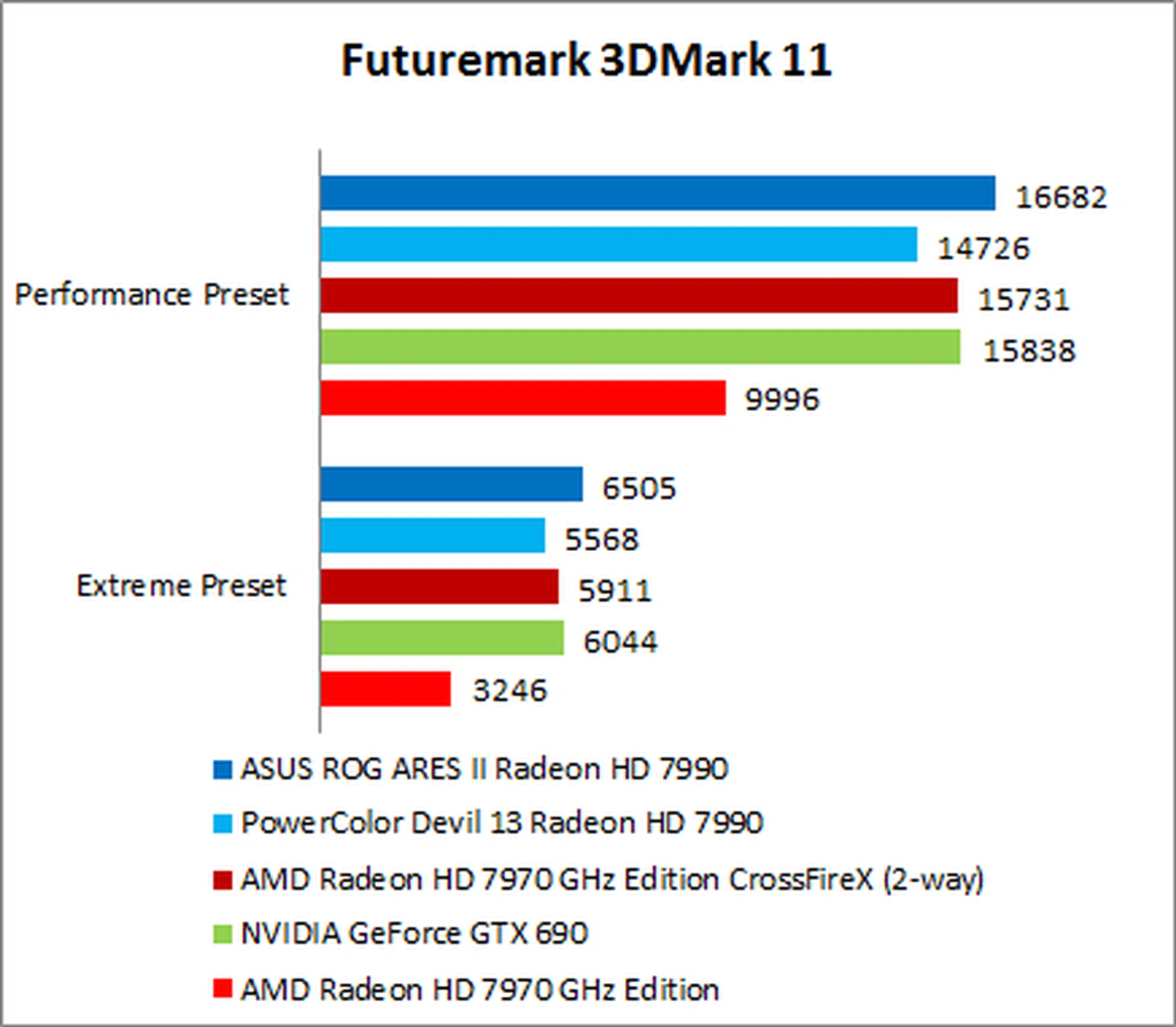 [caption=ASUS ROG ARES II Radeon HD 7990 and competitive SKUs compared]