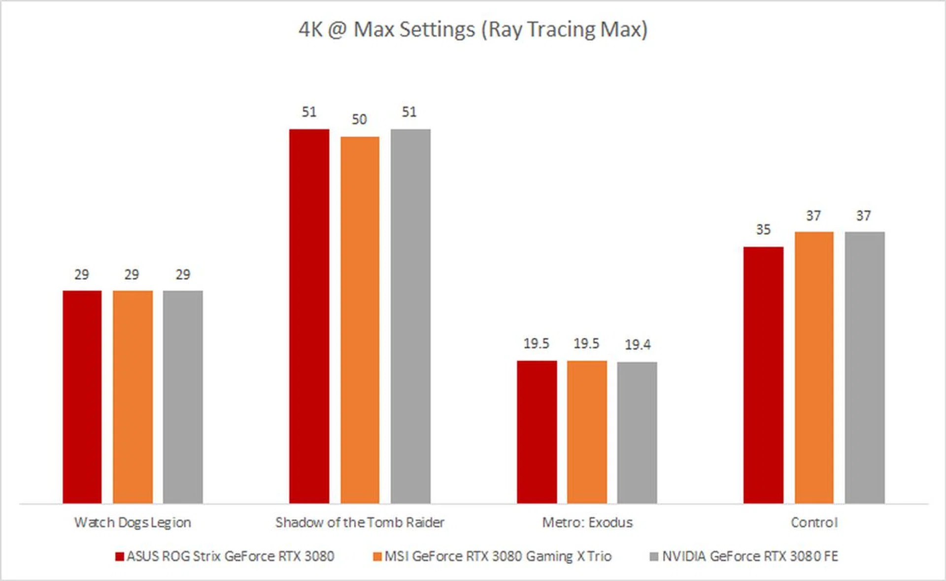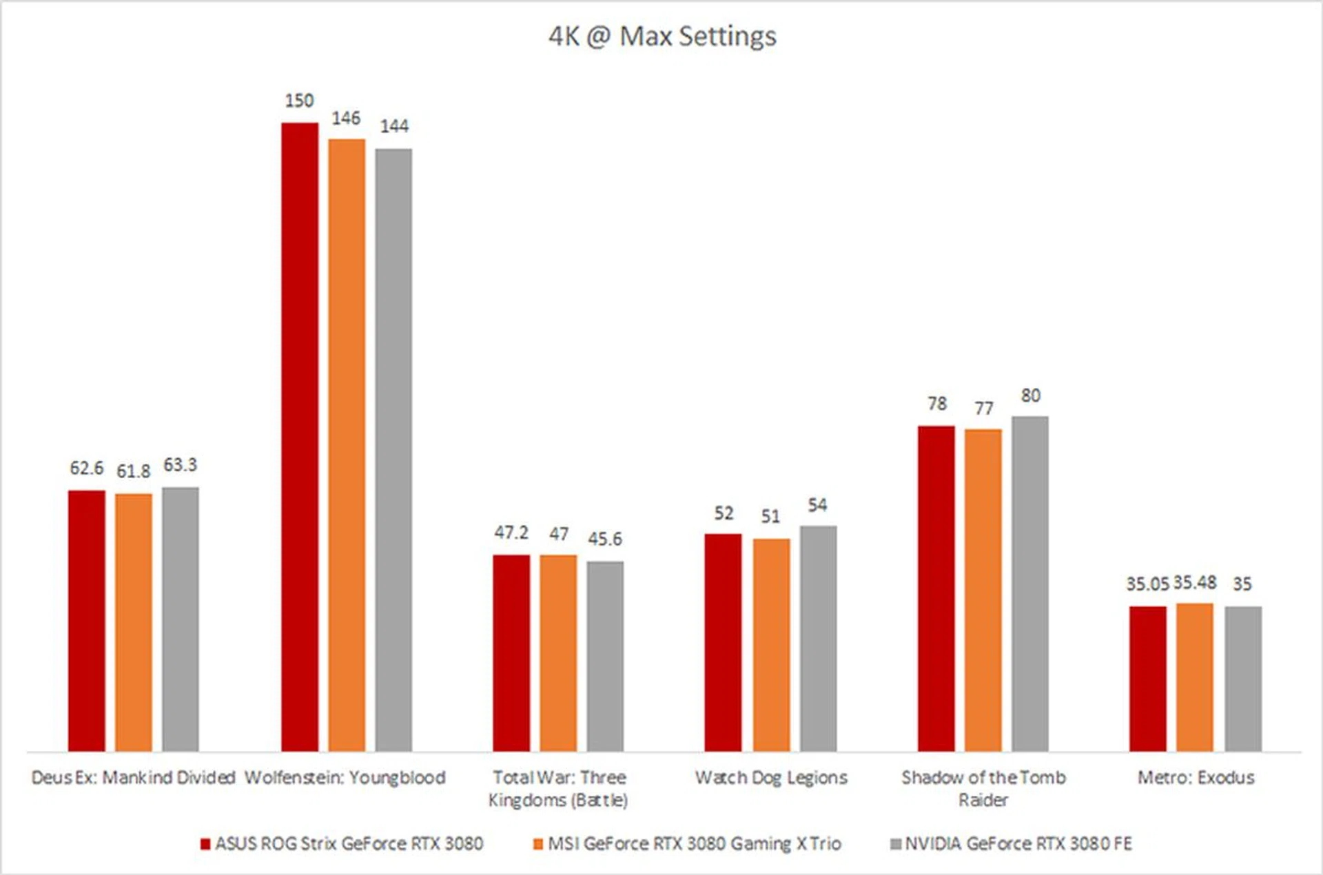 We'll be comparing the ASUS ROG Strix GeForce RTX 3080 against the NVIDIA GeForce RTX 3080 Founders Edition and the MSI GeForce RTX 3080 Gaming X Trio.