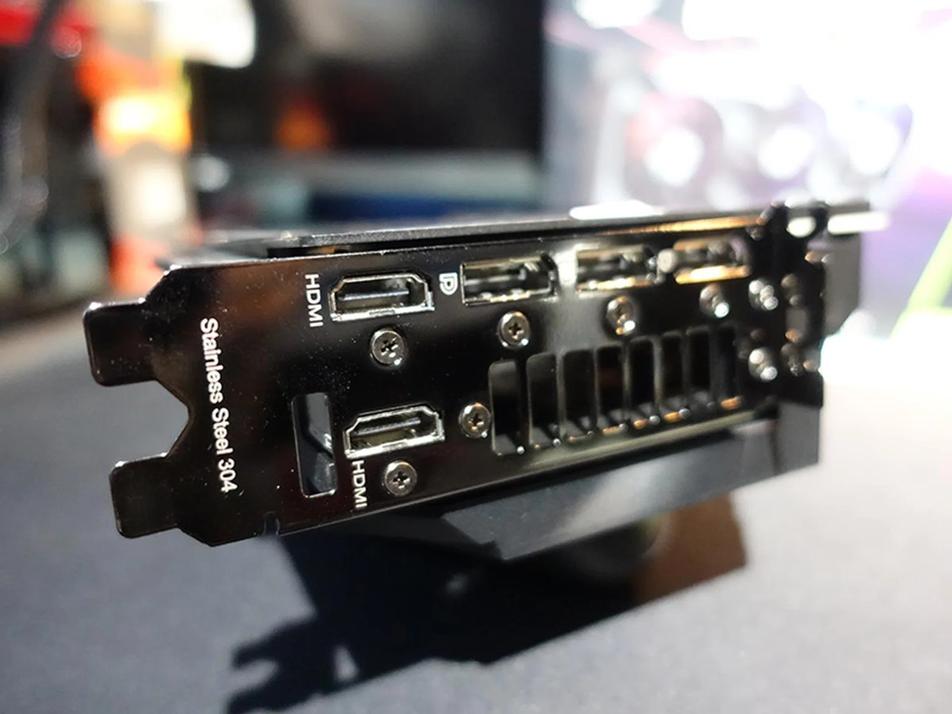 The I/O bracket is constructed from stainless steel to protect the display outputs and provide a more secure mount. You can also access the Dual BIOS switch at the back, which lets you quickly switch between Performance and Quiet modes if you don't want to fiddle with the software.
