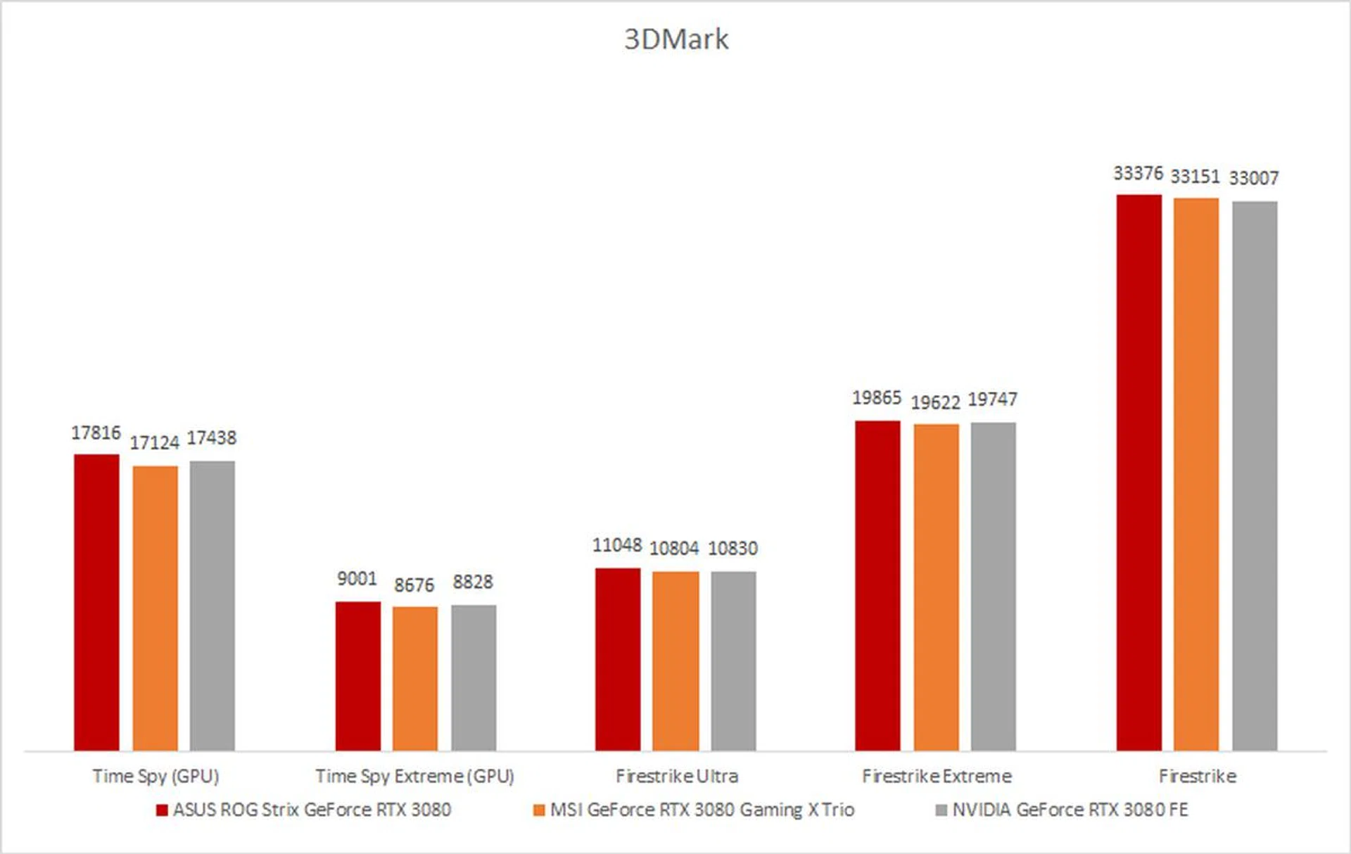 3DMark Time Spy Extreme Stress Test | ASUS ROG Strix GeForce RTX 3080 | MSI GeForce RTX 3080 Gaming X Trio | NVIDIA GeForce RTX 3080 Founders Edition |