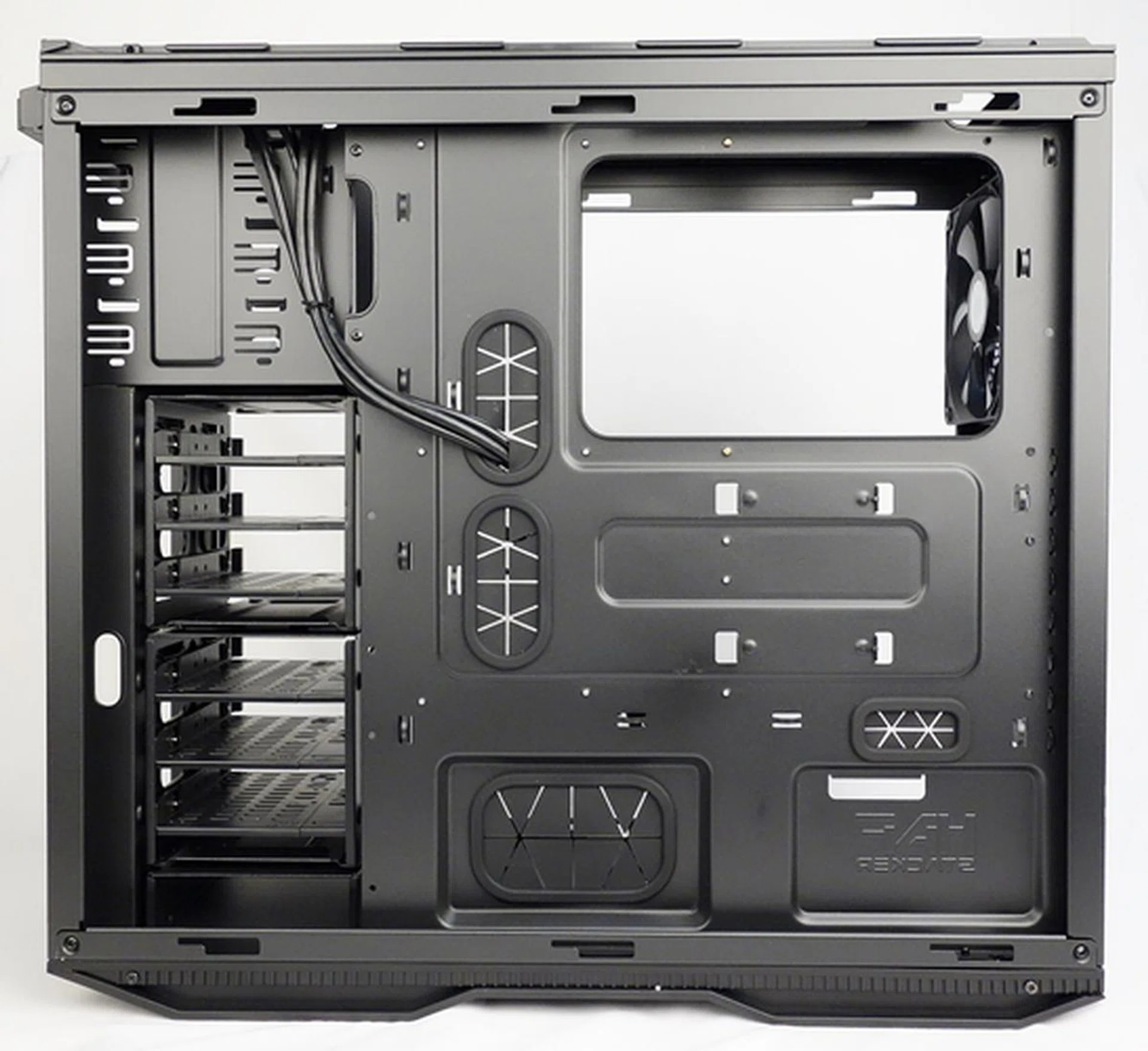 The case is able to accommodate motherboards of the following forms factors; EAXT, ATX and mATX. The motherboard tray has a large cut-out for mounting aftermarket CPU coolers. There are also rubber grommets for cable management.